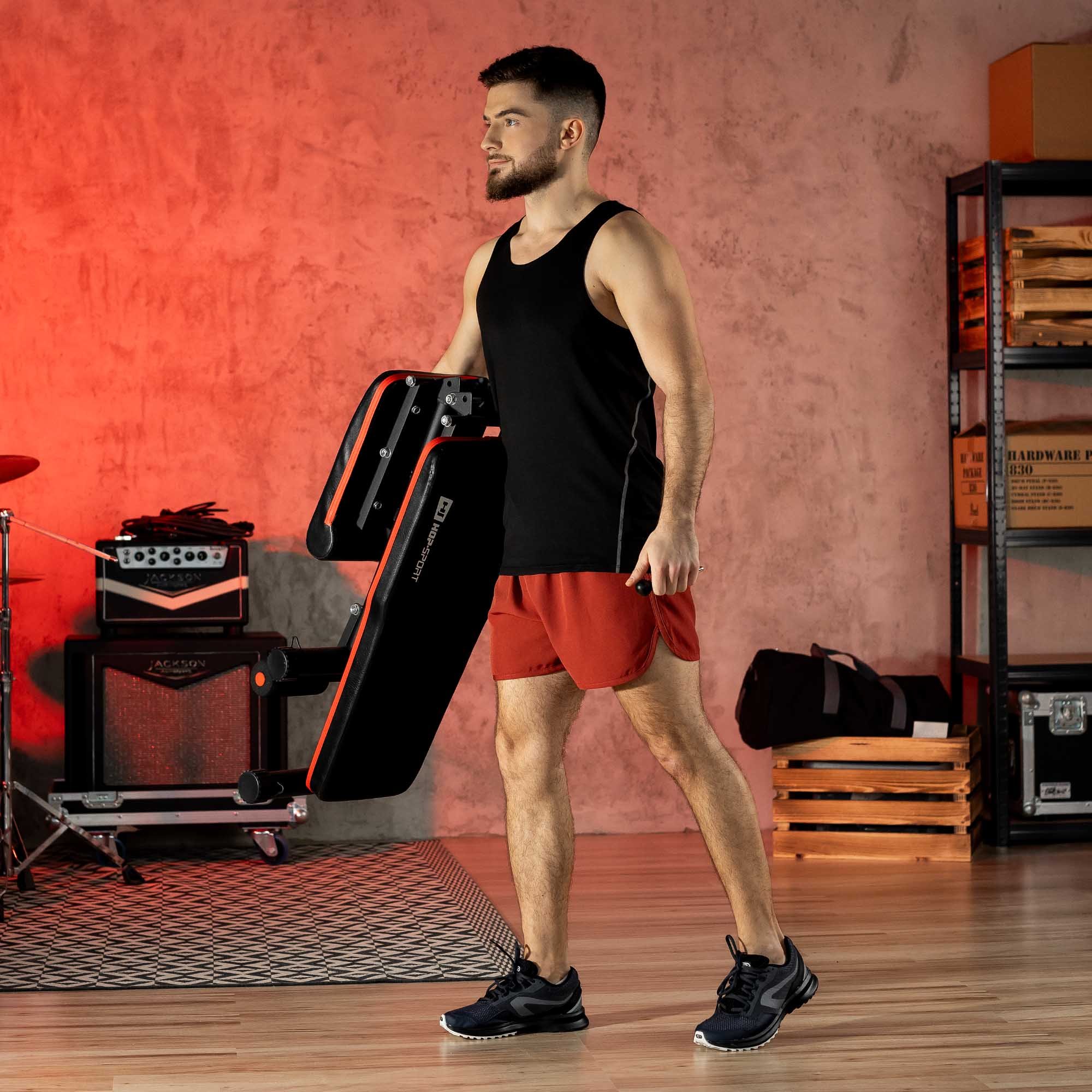 Banco 2030BH de la marca Hop-Sport modelo es un banco independiente universal y funcional. Equipado con ajuste del respaldo y el asiento, bloqueo de piernas permite entrenamiento variado de muchos grupos musculares. Los expansores incluidos con el banco permiten hacer el calentamiento y el entrenamiento más atractivos. Una ventaja adicional de este modelo es la posibilidad de plegado después del entrenamiento.