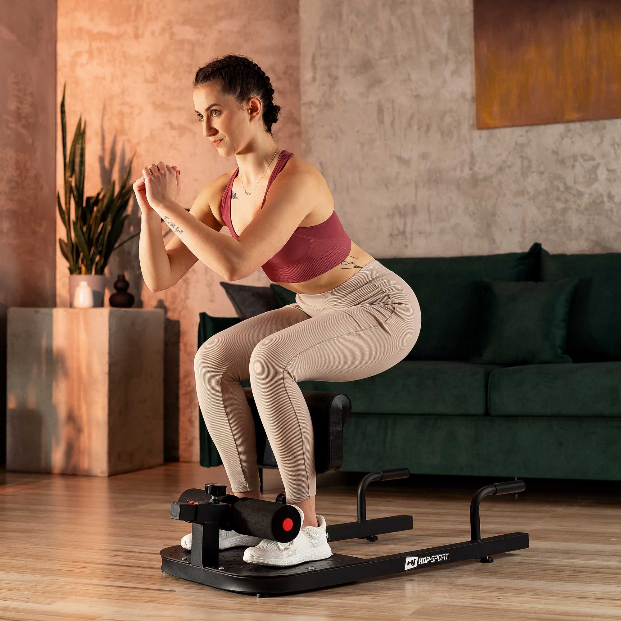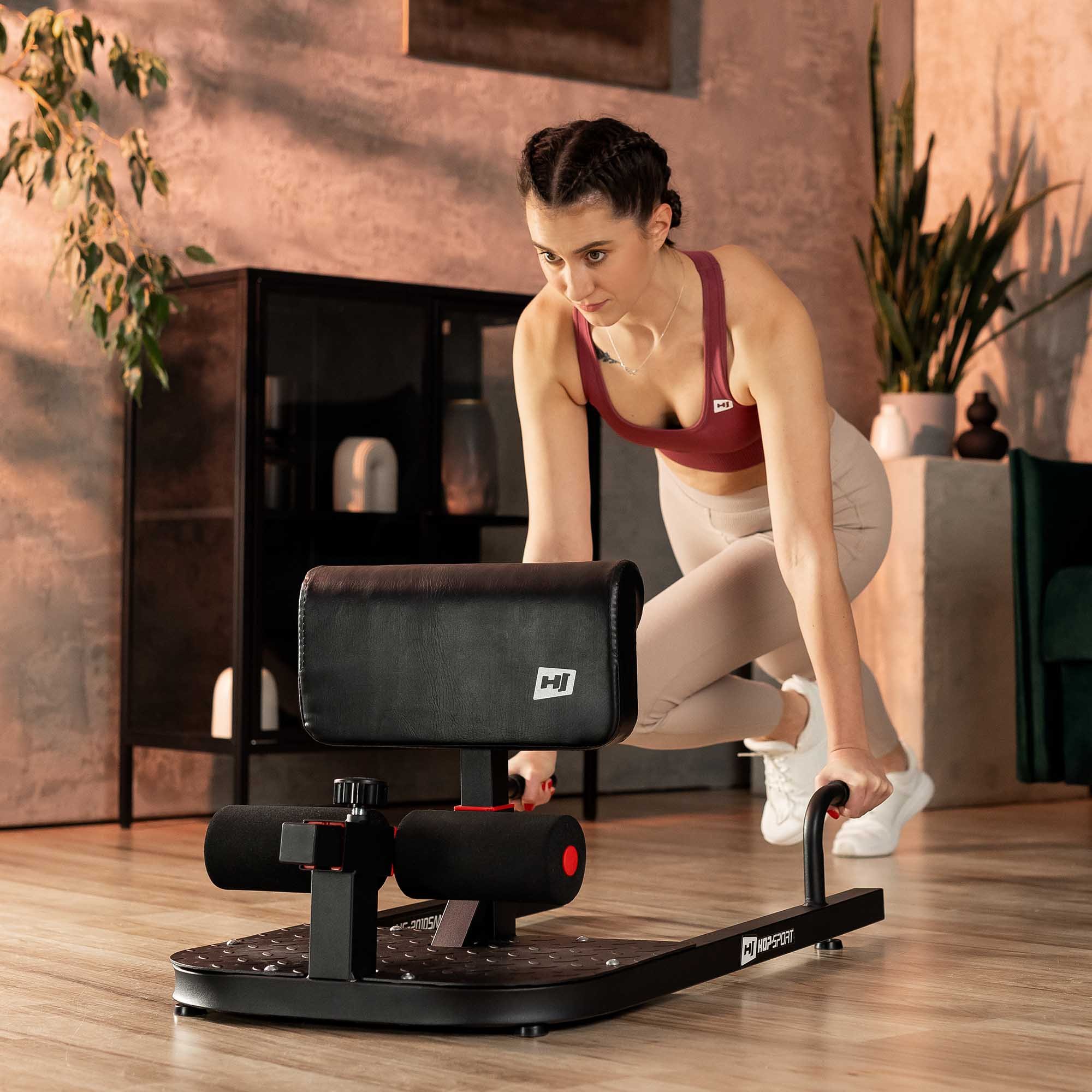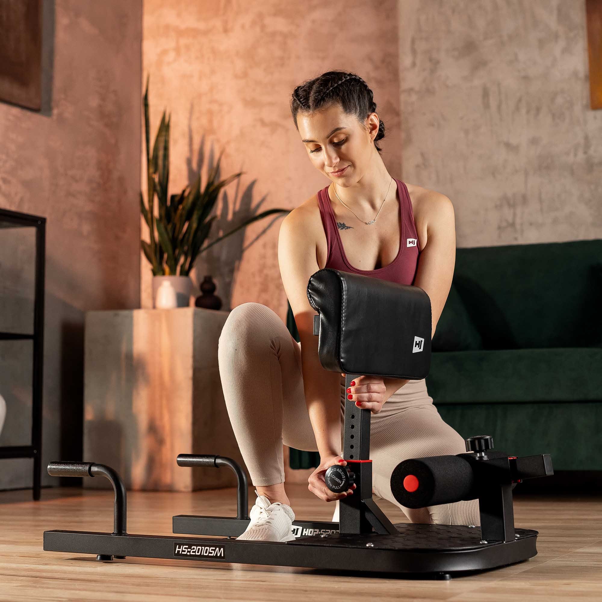 Banco HS-2010 SM es un dispositivo de entrenamiento en el que puedes realizar 3 tipos de ejercicios (sentadillas “sissy”, abdominales y flexiones ) y cuidar de todos los grupos musculares más importantes. Gracias a la regulación de altura se puede ajustar el dispositivo a la altura del usuario. Todo ha sido fabricado con los mejores materiales y con atención a todos los detalles, lo que hace que el entrenamiento sea seguro y cómodo.
