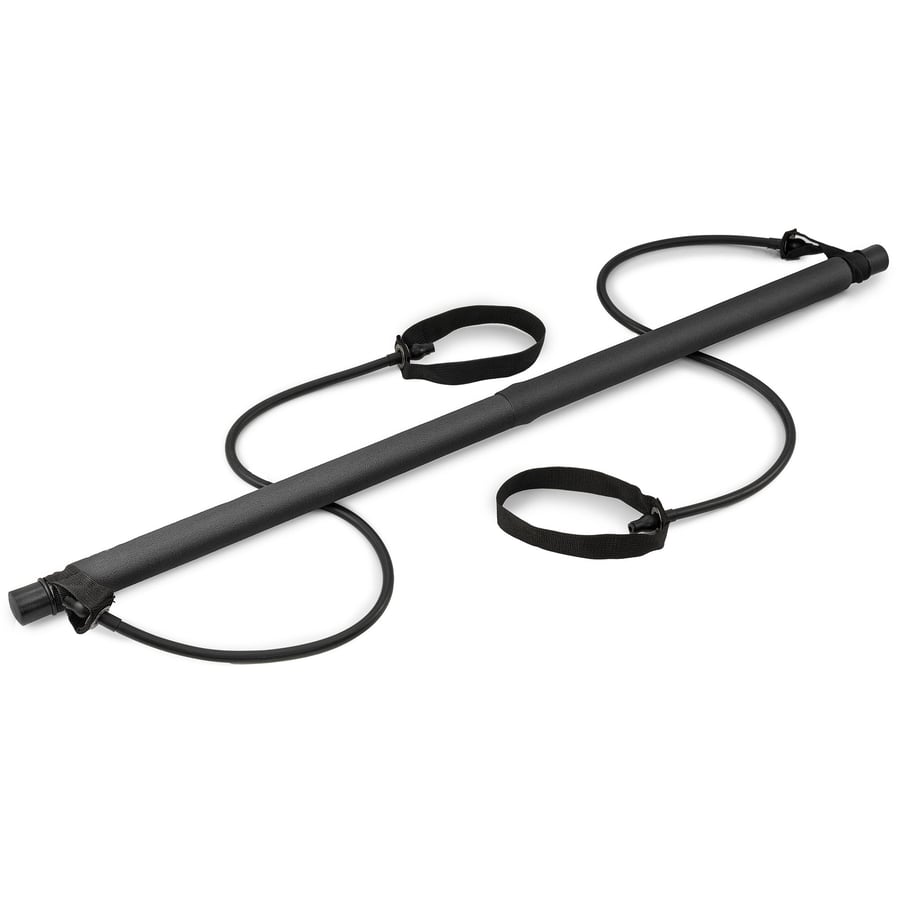 El bastón de entrenamiento negro es un dispositivo pequeño y ligero que puedes transportar fácilmente. En ambos lados de la barra están fijados expansores multifuncionales.