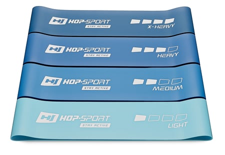 Conjunto de bandas de resistencia 600x75 mm HS-L675RLB de la marca Hop-Sport en color azul es una herramienta que mejorará la eficacia de los ejercicios realizados. Su aplicación universal permite utilizarlas en diferentes tipos de entrenamiento: desde fuerza, pasando por fitness, hasta ejercicios de rehabilitación. Los entrenamientos con bandas te ayudarán a fortalecer los músculos y las articulaciones de todo el cuerpo. Se recomiendan tanto para principiantes como para avanzados. El conjunto HS-L675RLB incluye cuatro bandas de látex que ofrecen diferentes niveles de resistencia en un rango de 4,5 a 19 kg. Debido a su pequeño tamaño, las bandas son muy fáciles de transportar y almacenar.