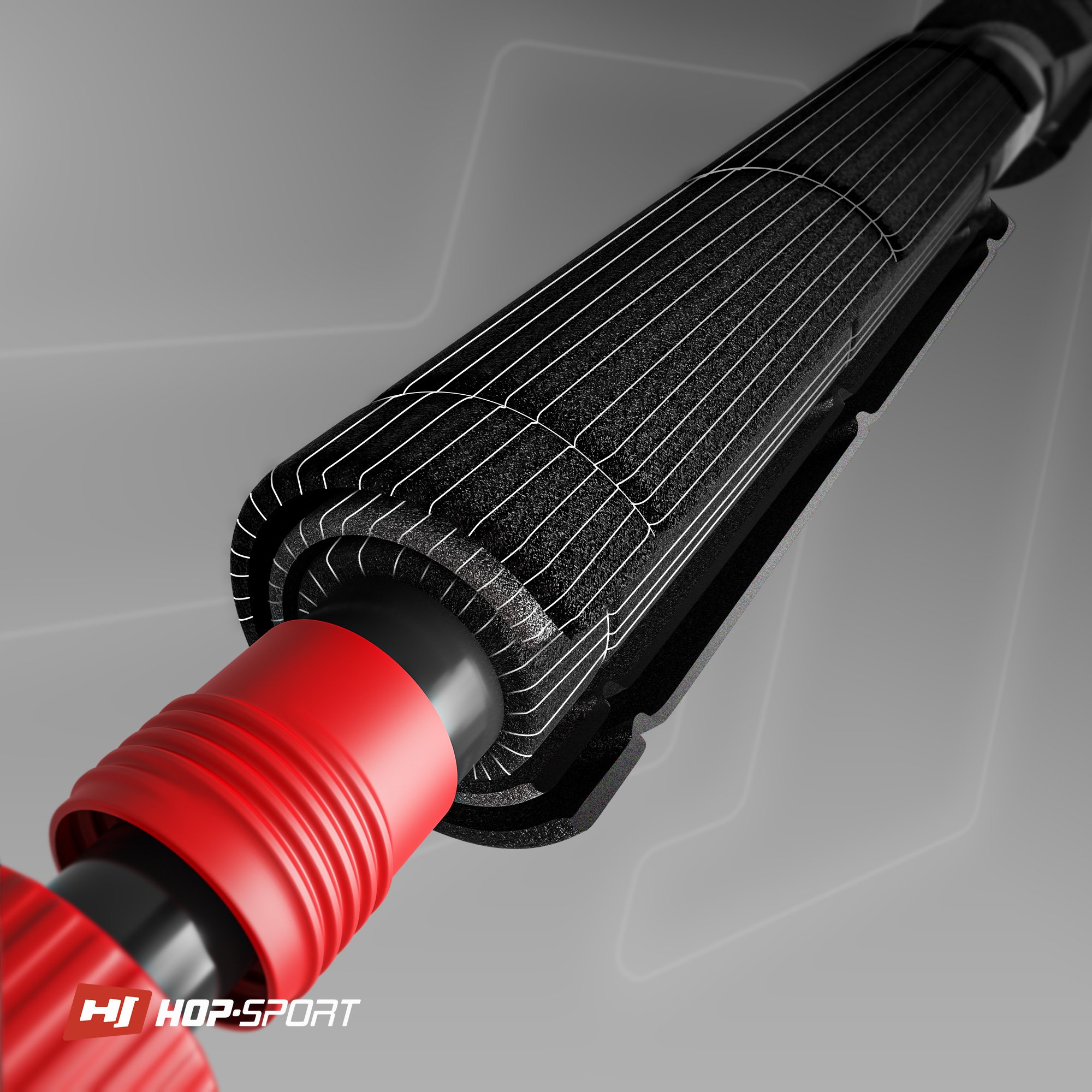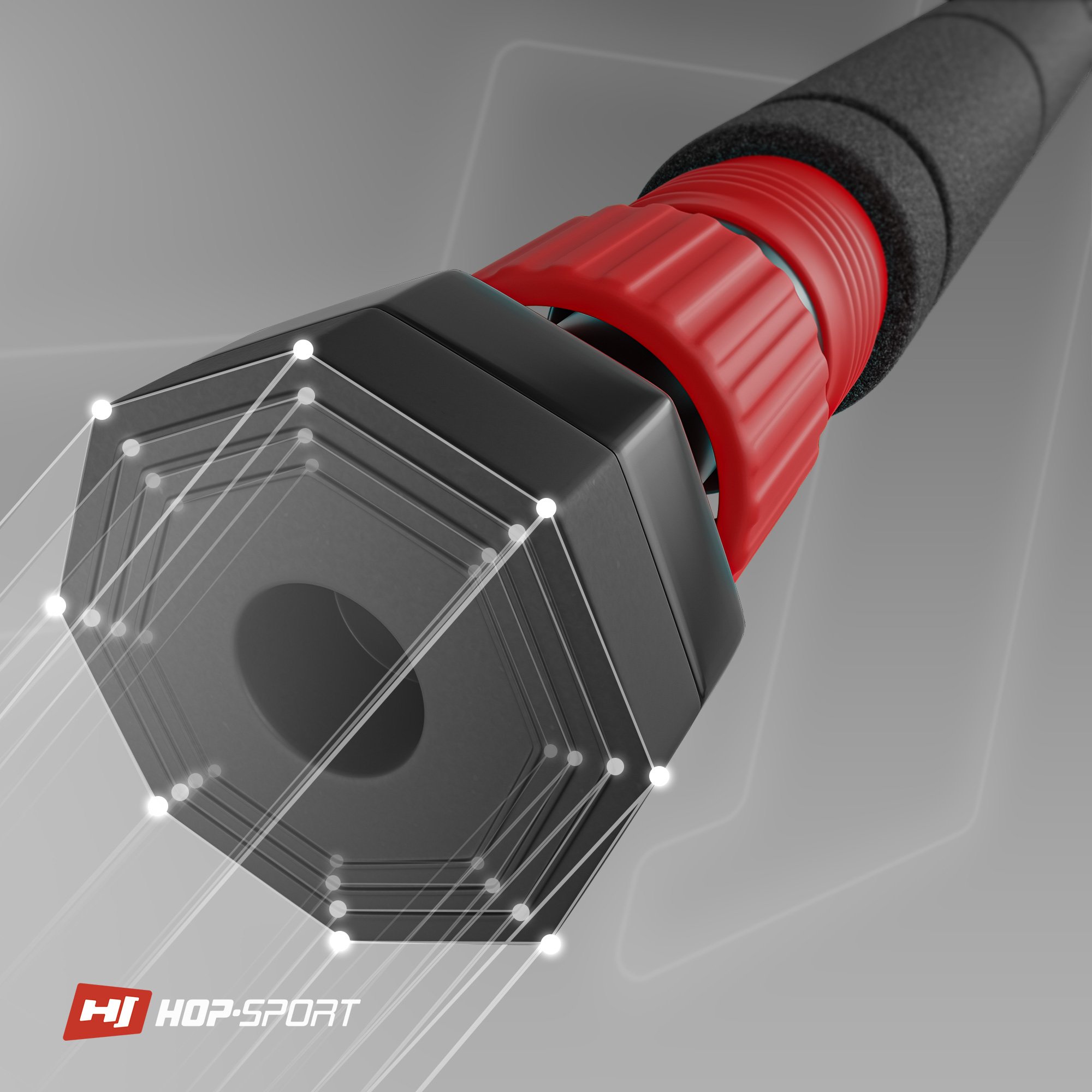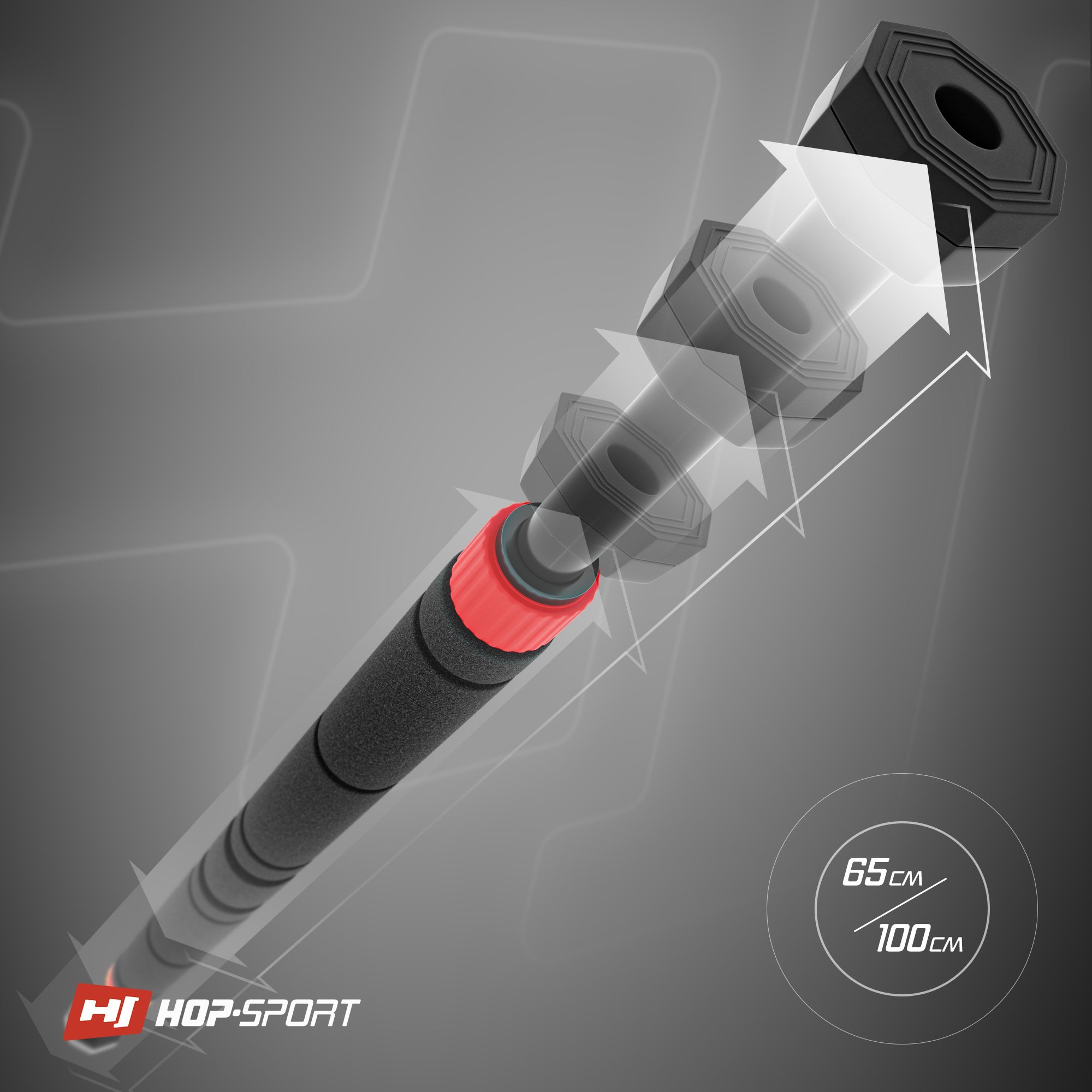 Sistema de presión de ocho puntos, pies de goma antideslizantes. Revestimiento de tres capas. El entrenamiento con la barra Hop-Sport permite mejorar la fuerza.