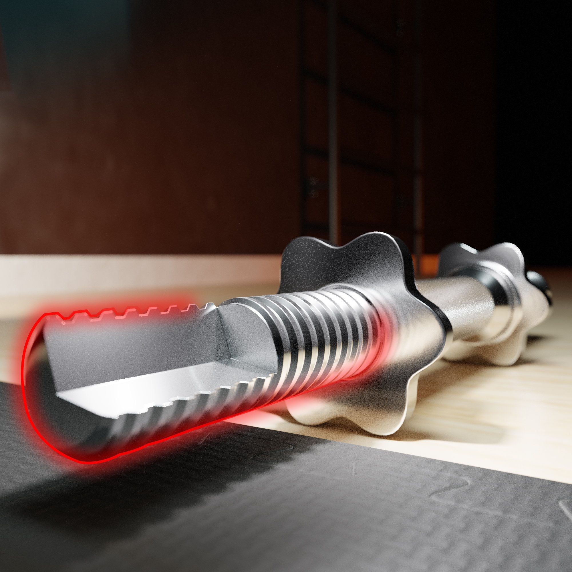La barra de acero de 40 cm, gracias a la parte de agarre estriada, se sostiene firmemente en las manos