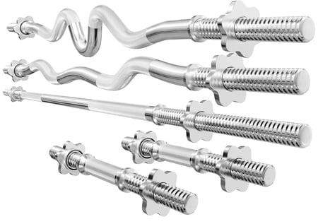 Todas nuestras barras están hechas de acero cromado de alta calidad, tienen partes de agarre estriadas en diagonal, lo que aumenta la comodidad del ejercicio, y los cierres precisos para las pesas garantizan un entrenamiento seguro y un agarre firme.