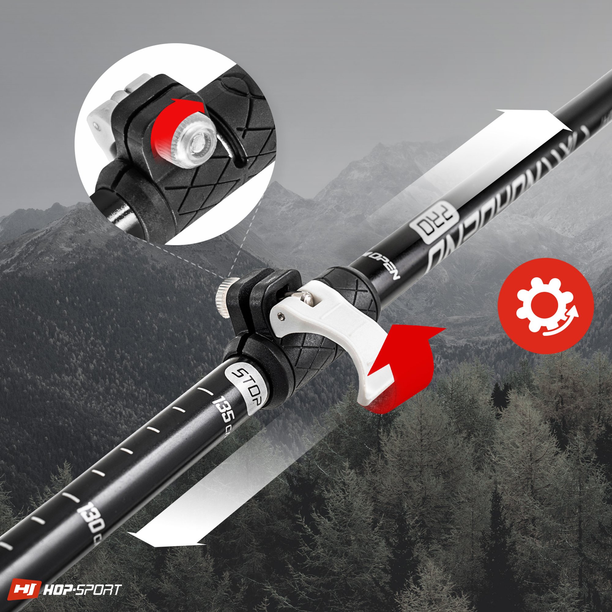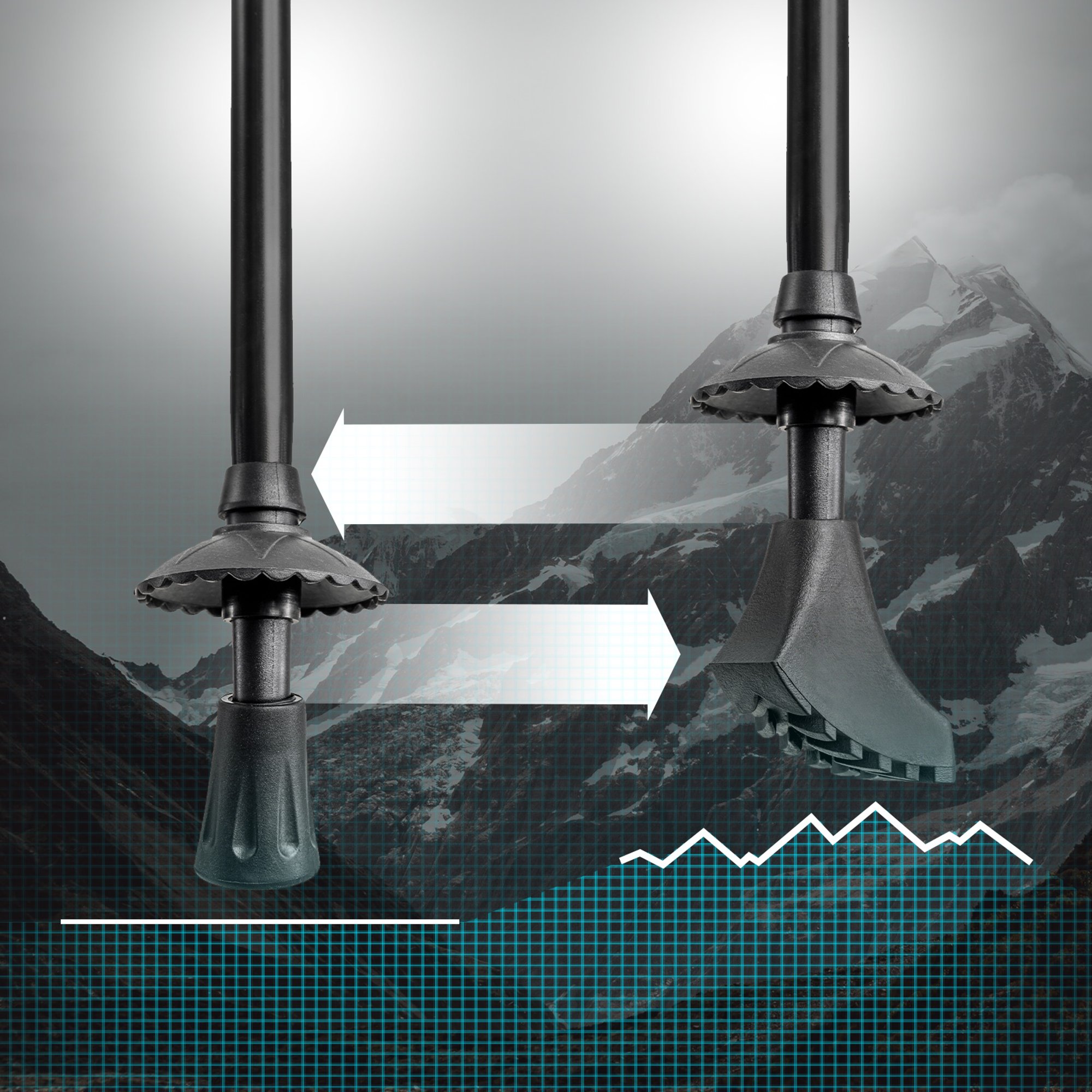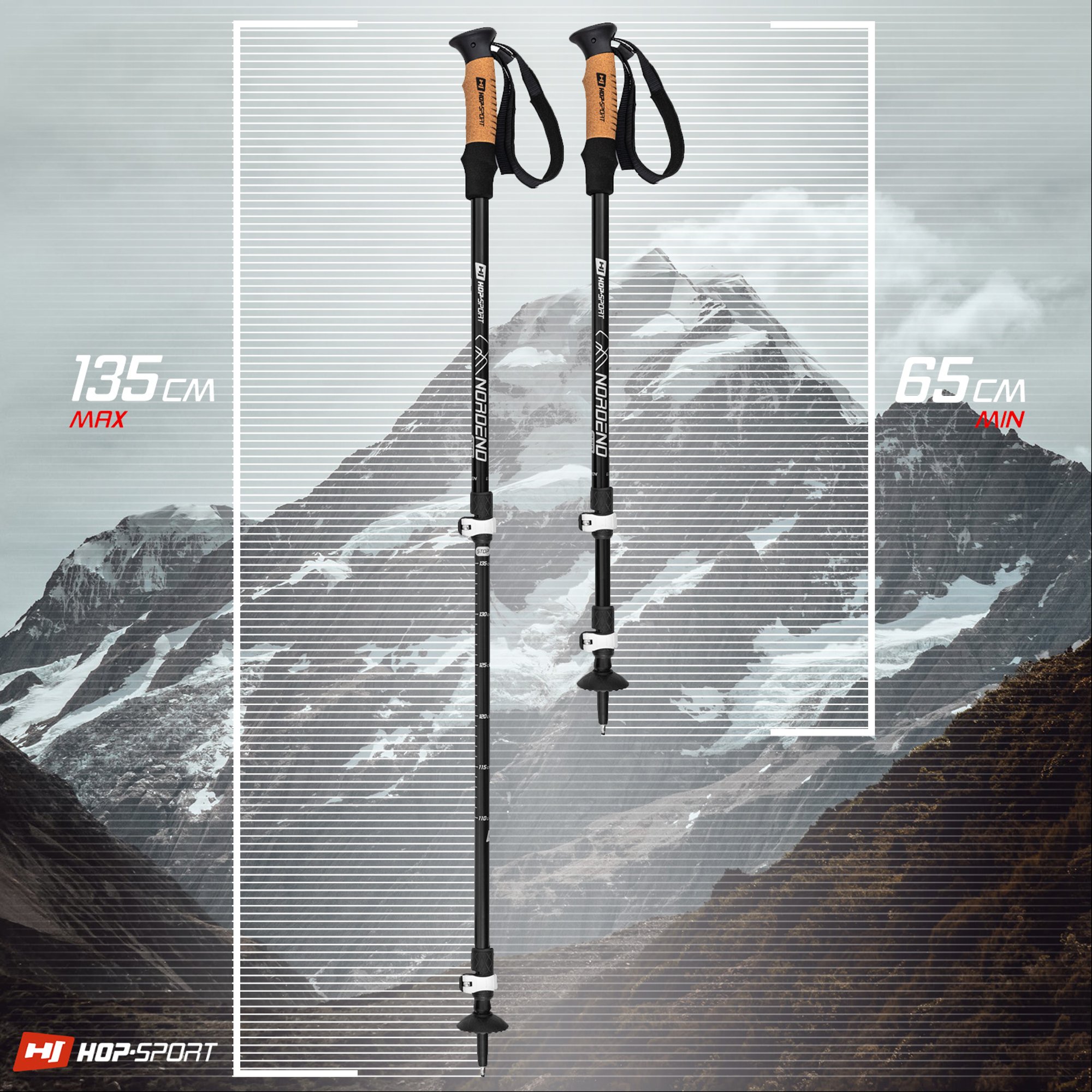 Gracias a su construcción telescópica, la longitud de los bastones se puede ajustar libremente de acuerdo con la altura del usuario o la ruta seleccionada. La escala muy legible y el sistema de bloqueo de longitud del bastón, fabricado con precisión, hacen que ajustar sus dimensiones sea extremadamente sencillo.