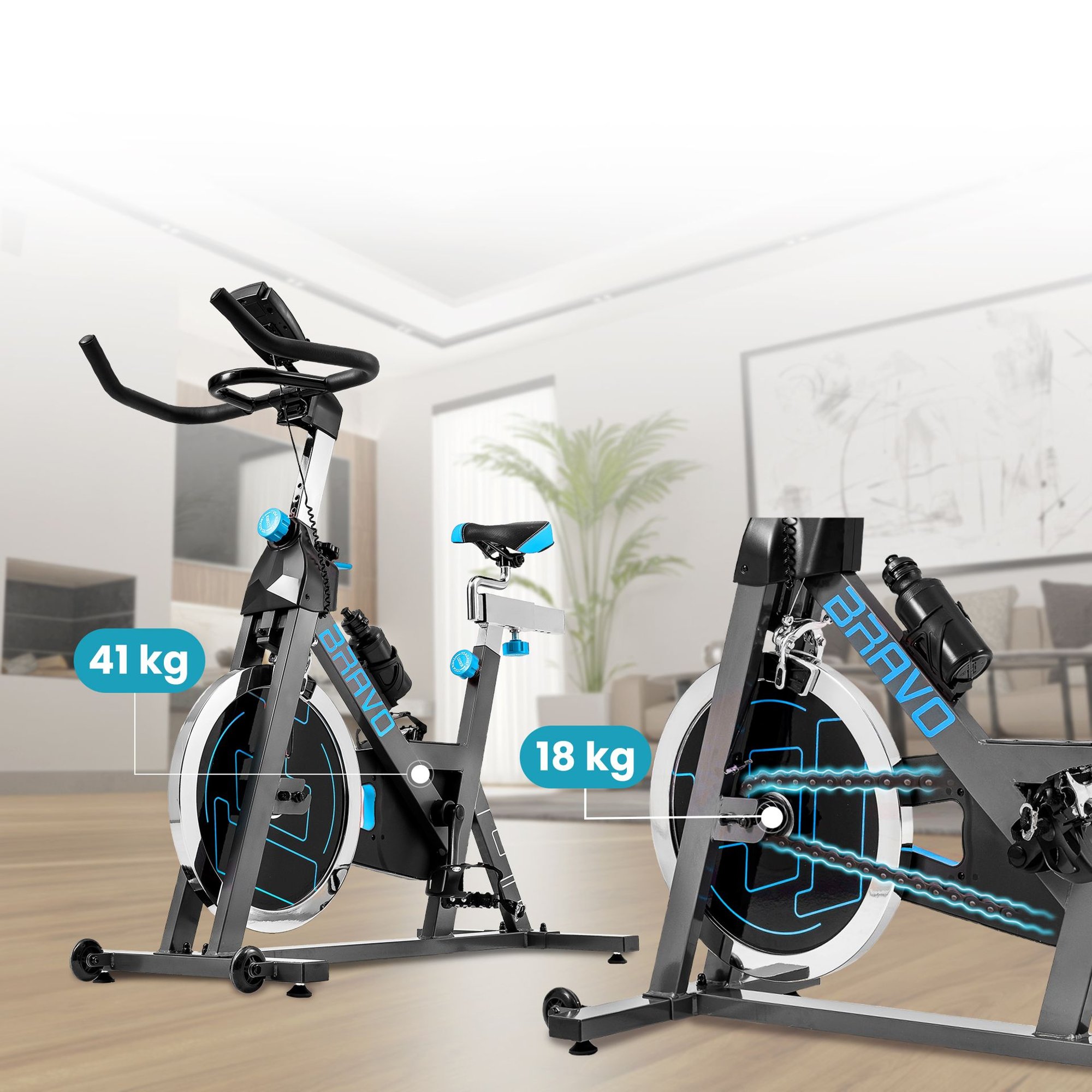¡Sube a una bicicleta de spinning profesional y siéntete como en la carretera! La experiencia real de montar se debe a una construcción extremadamente estable y duradera con el mayor peso de su clase, ¡hasta 41 kilogramos! Durante el paseo, no te enfrentarás a fallos. Tu seguridad y comodidad al montar están garantizadas por un volante de inercia masivo de gran diámetro y peso de 18 kg, así como por un sistema de transmisión por cadena.