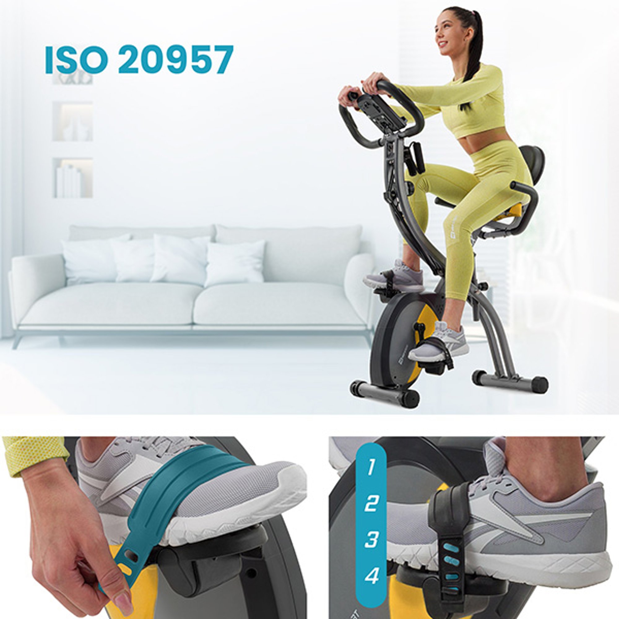 Bicicleta de entrenamiento plegable Xbike Grix gris, sistema de resistencia magnética con ajuste manual, computadora con medición de pulso, calorías, distancia y tiempo. Comienza tu entrenamiento con la bicicleta Hop-Sport.