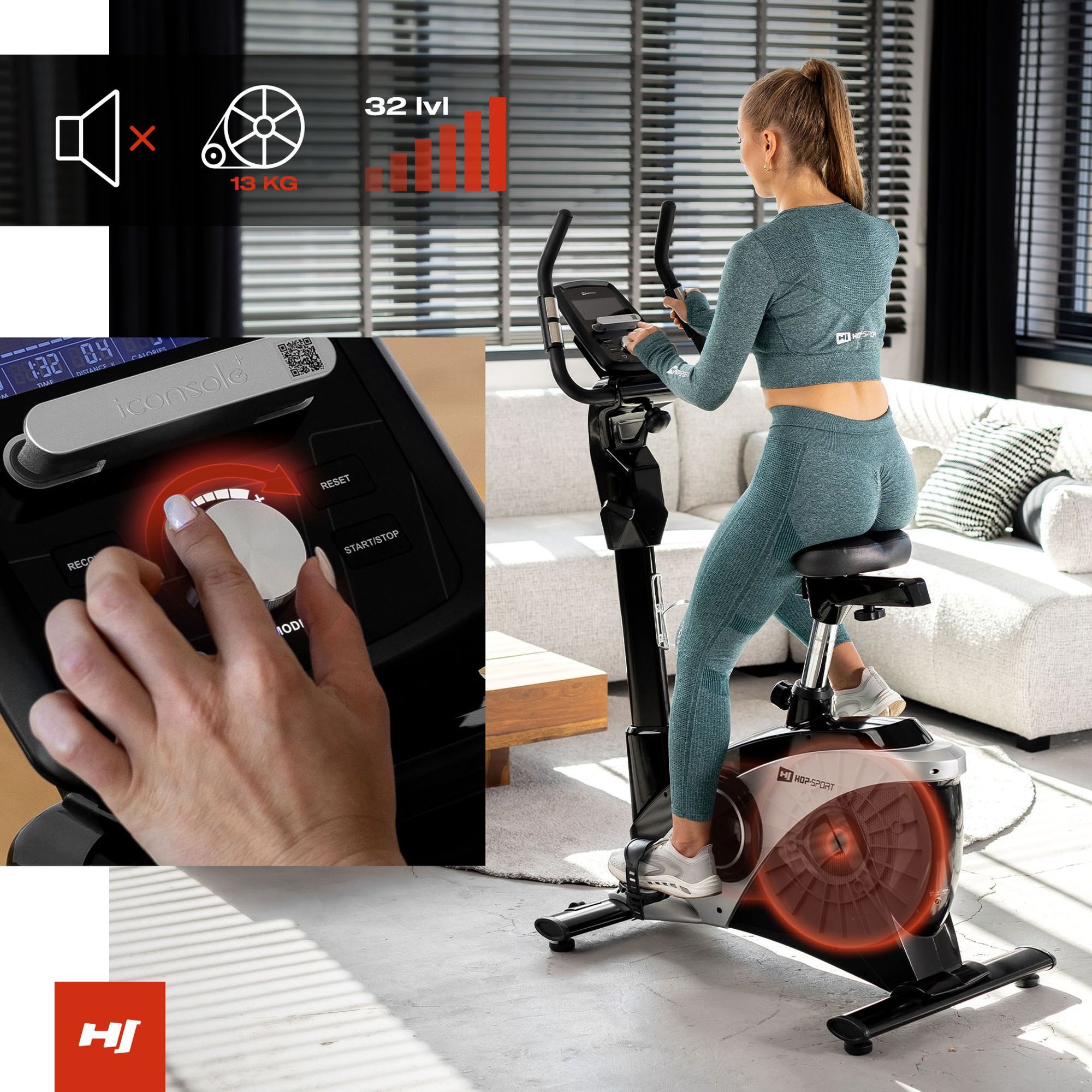 La bicicleta eléctrica-magnética HS-090H Apollo te permitirá mejorar tu forma sin forzar las articulaciones. La bicicleta está equipada con un ordenador con pantalla LCD con función Bluetooth y medición de pulso. Gracias al soporte para tablet o teléfono, durante el entrenamiento puedes ver una película o escuchar tu música favorita. El sistema de resistencia magnética aplicado (13 kg) garantiza un funcionamiento suave del equipo. Asiento ajustable y manillar con ángulo de inclinación regulable permiten adaptar la bicicleta a la figura del usuario.