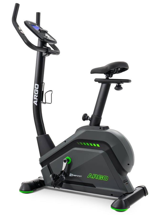 Bicicleta de entrenamiento estacionaria Argo HS-120H con computadora que se conecta con las aplicaciones Kinomap e iConsole+. La bicicleta ideal para entrenar en casa con numerosas regulaciones y programas de entrenamiento. ¡Entrena hoy mismo con Hop-Sport!