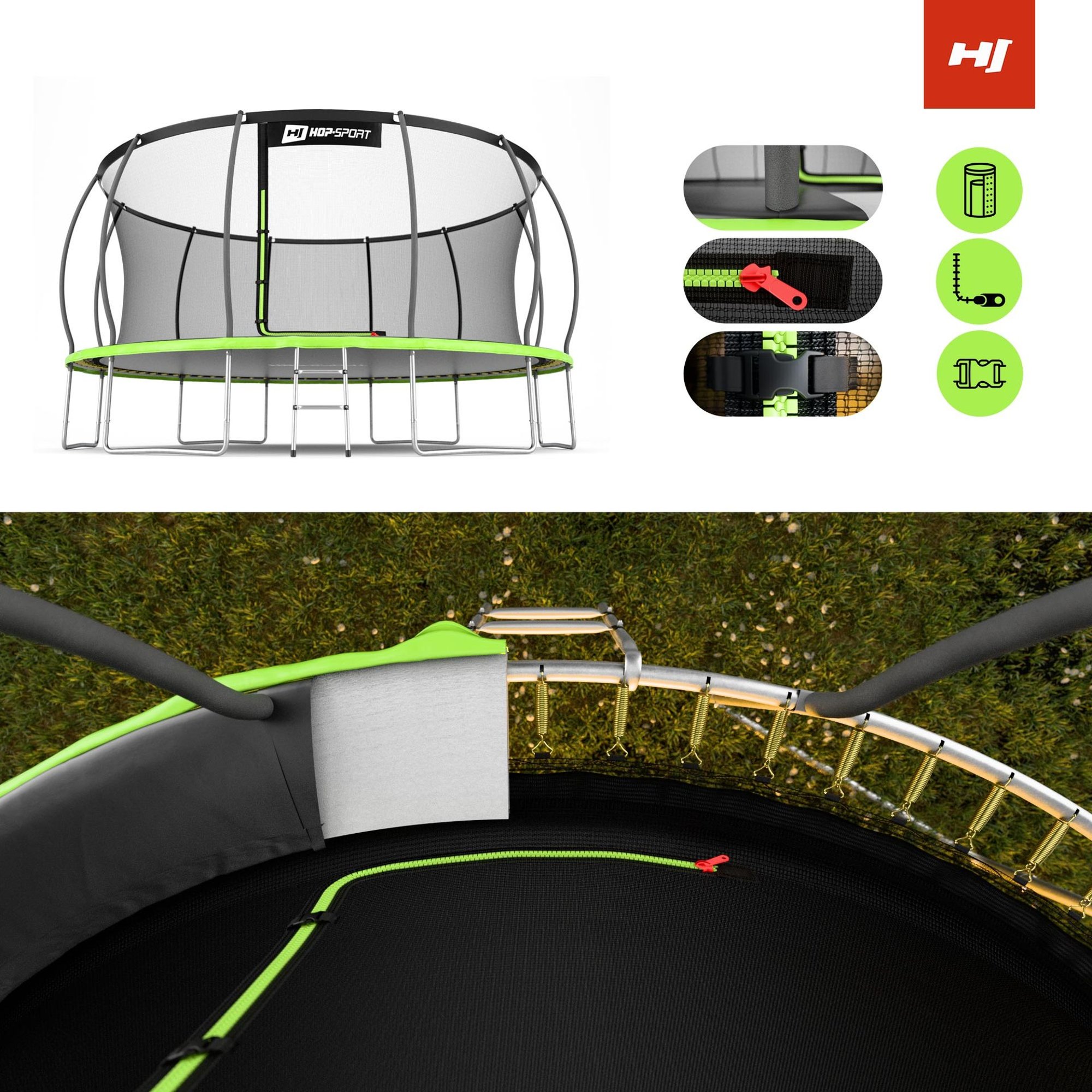 ¿Quieres asegurarte de que tú y tu familia tengan una diversión inolvidable al aire libre? ¡El trampolín de jardín HS-PT16I de la marca Hop-Sport es una excelente elección! Gracias a su alta calidad de fabricación, construcción sólida y numerosas medidas de seguridad, puedes disfrutar de saltos despreocupados en condiciones completamente cómodas y seguras. Este modelo se destaca por su diseño interesante y su innovadora red interior tipo "calabaza", que proporciona aún más comodidad al usar el trampolín.