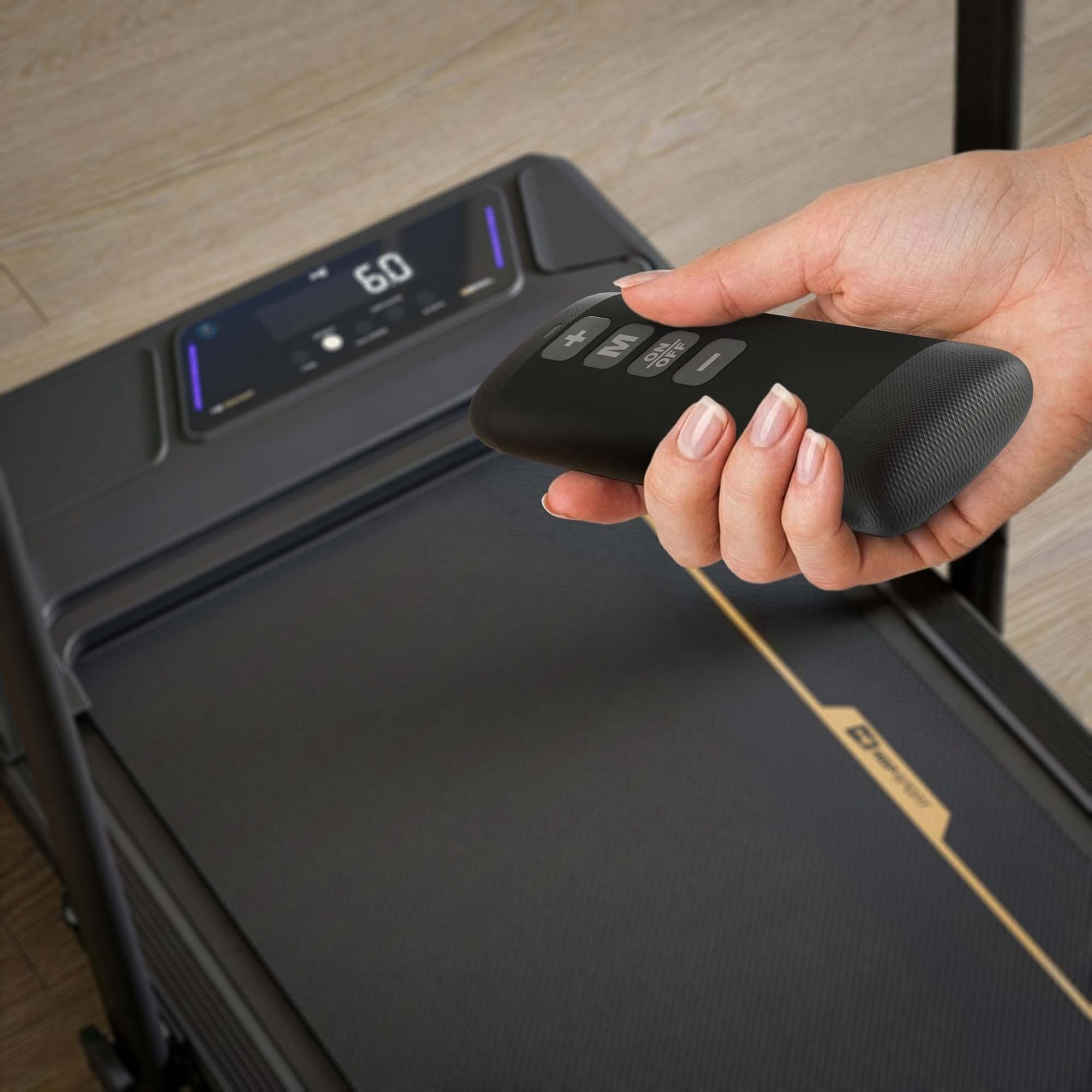 La superficie de carrera de 105 × 40 cm ofrece espacio suficiente para un movimiento natural, mientras que el motor garantiza un funcionamiento fluido y silencioso. Gracias al ajuste de velocidad e inclinación, puedes adaptar el entrenamiento a tus objetivos. Esta cinta con Bluetooth permite conectarse a la app Kinomap, mientras que el display LED muestra tiempo, distancia, velocidad, calorías y número de pasos. HS-950WP es una cinta silenciosa que ofrece control total del entrenamiento, ideal tanto para trabajar en el escritorio como para sesiones deportivas.