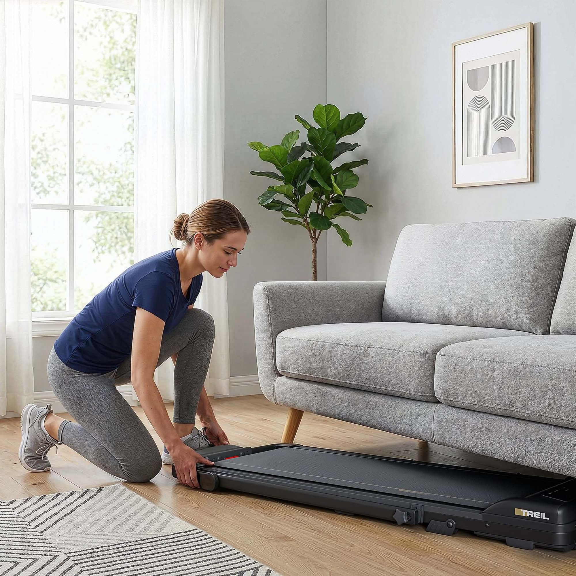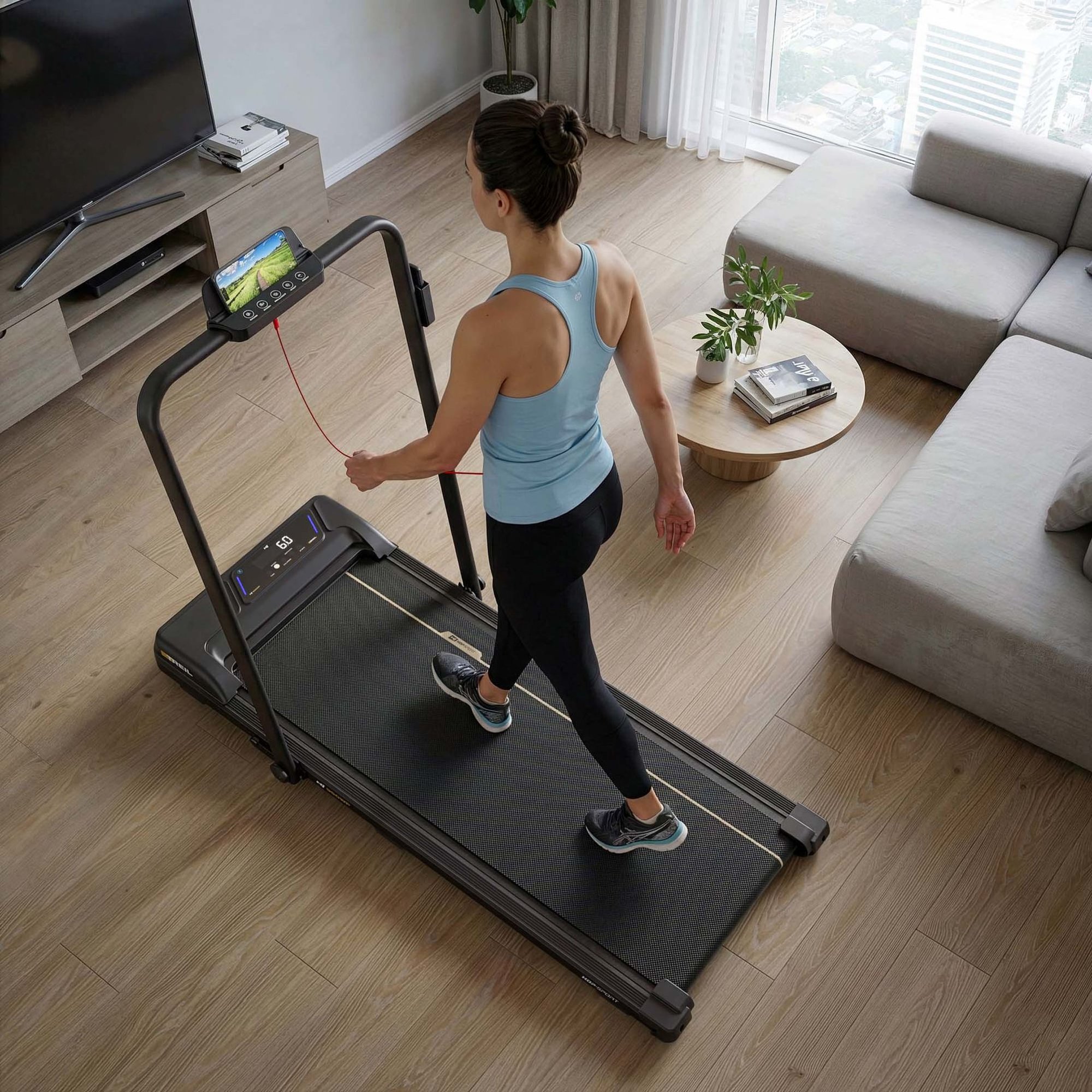 Es una cinta de correr hasta 120 kg, ideal para salones, dormitorios o espacios pequeños.