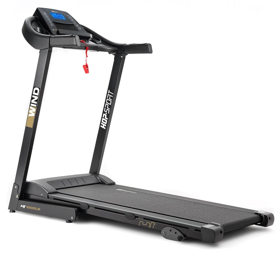 La cinta de correr eléctrica Wind de la marca Hop-Sport es un equipo de entrenamiento moderno para uso doméstico. Las ventajas de la cinta son: manejo intuitivo, motor silencioso de 2 HP, computadora LCD y conexión Bluetooth 4.0. El motor permite entrenamientos de hasta 14 km/h. Gracias a la regulación manual de tres niveles de inclinación de la cinta, puedes aumentar la intensidad del ejercicio. Los escalones laterales de protección con superficie antideslizante y el sistema de amortiguación especialmente diseñado garantizan seguridad durante el entrenamiento. La llave de seguridad incluida permite detener la cinta si es necesario. El dispositivo está equipado con un soporte para tableta, soporte para botella y ruedas de transporte, asegurando la completa movilidad del equipo.