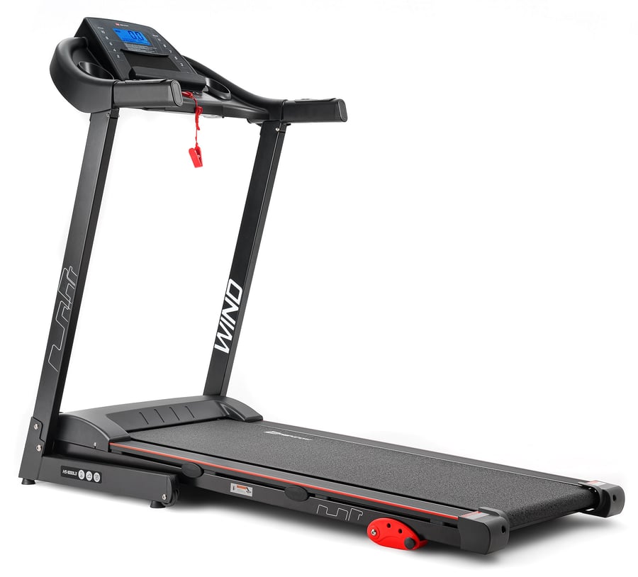 Cinta de correr plegable HS-1000LB Wind con numerosos programas de entrenamiento y acceso a aplicaciones móviles, motor de 2,0 HP permite alcanzar velocidades de hasta 14 km/h.