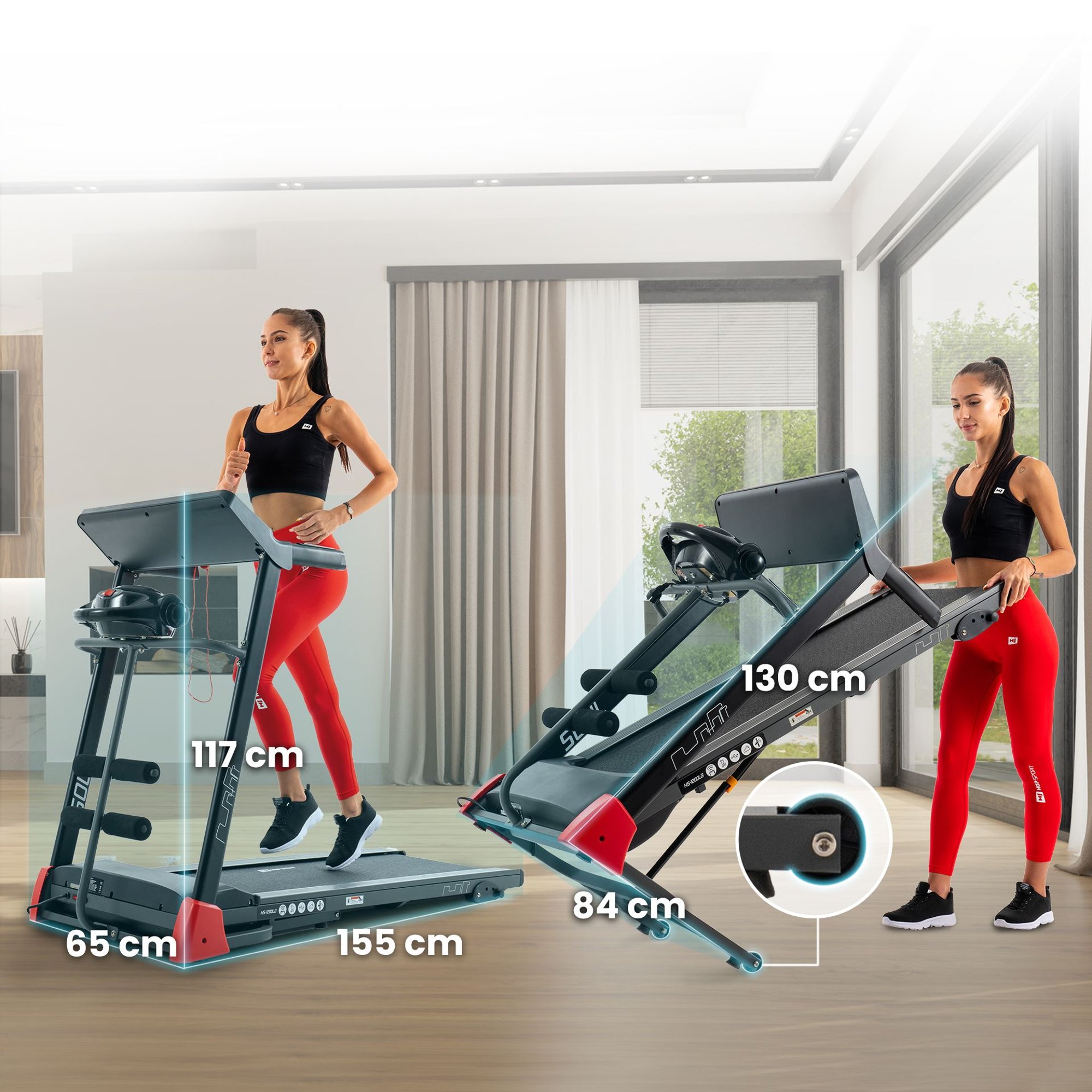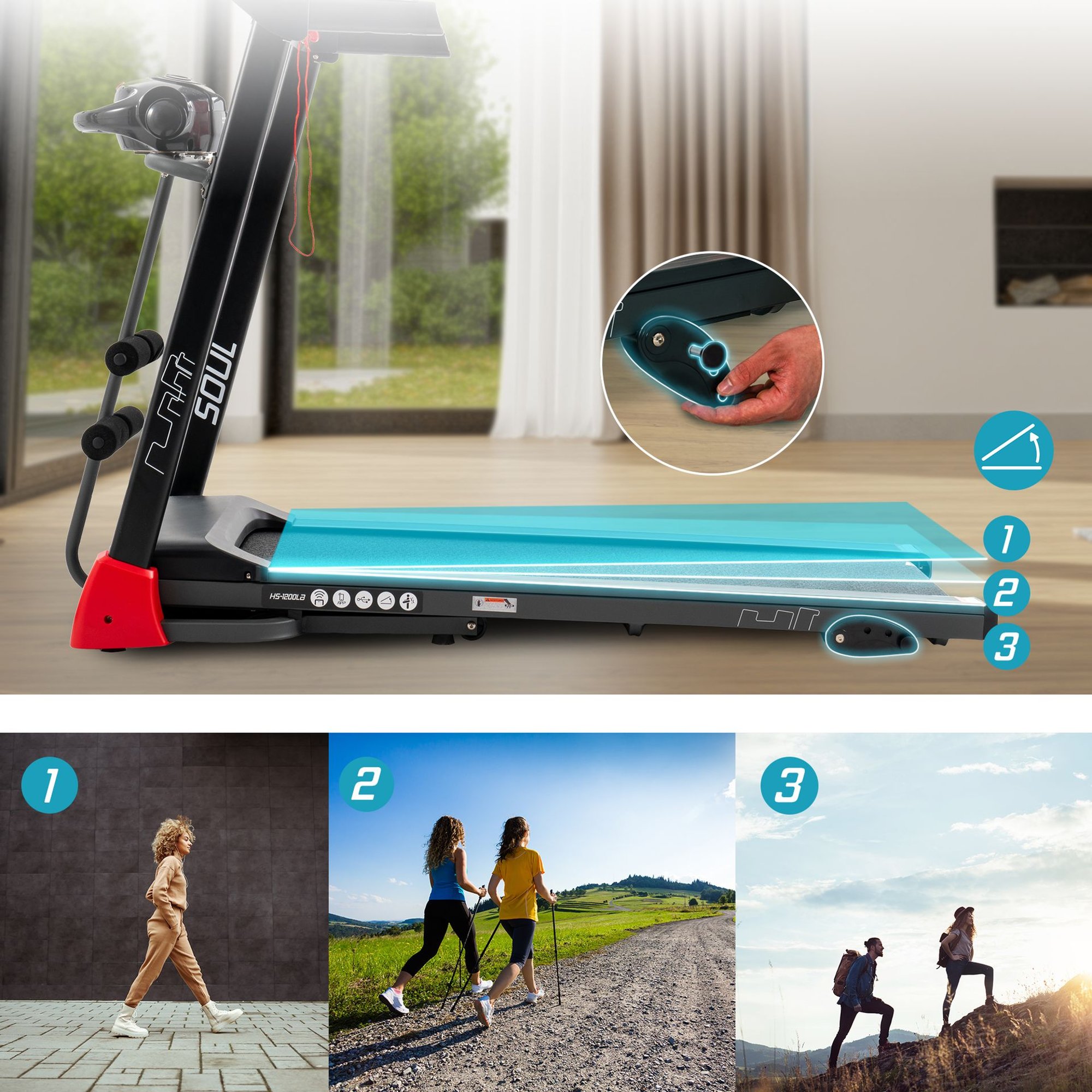 Cinta de correr con masajeadora, plegable HS-1200LB Soul, 3 en 1, computadora con programas de entrenamiento y medición, acceso a aplicaciones móviles, bluetooth, velocidad 0.8-14 km/h