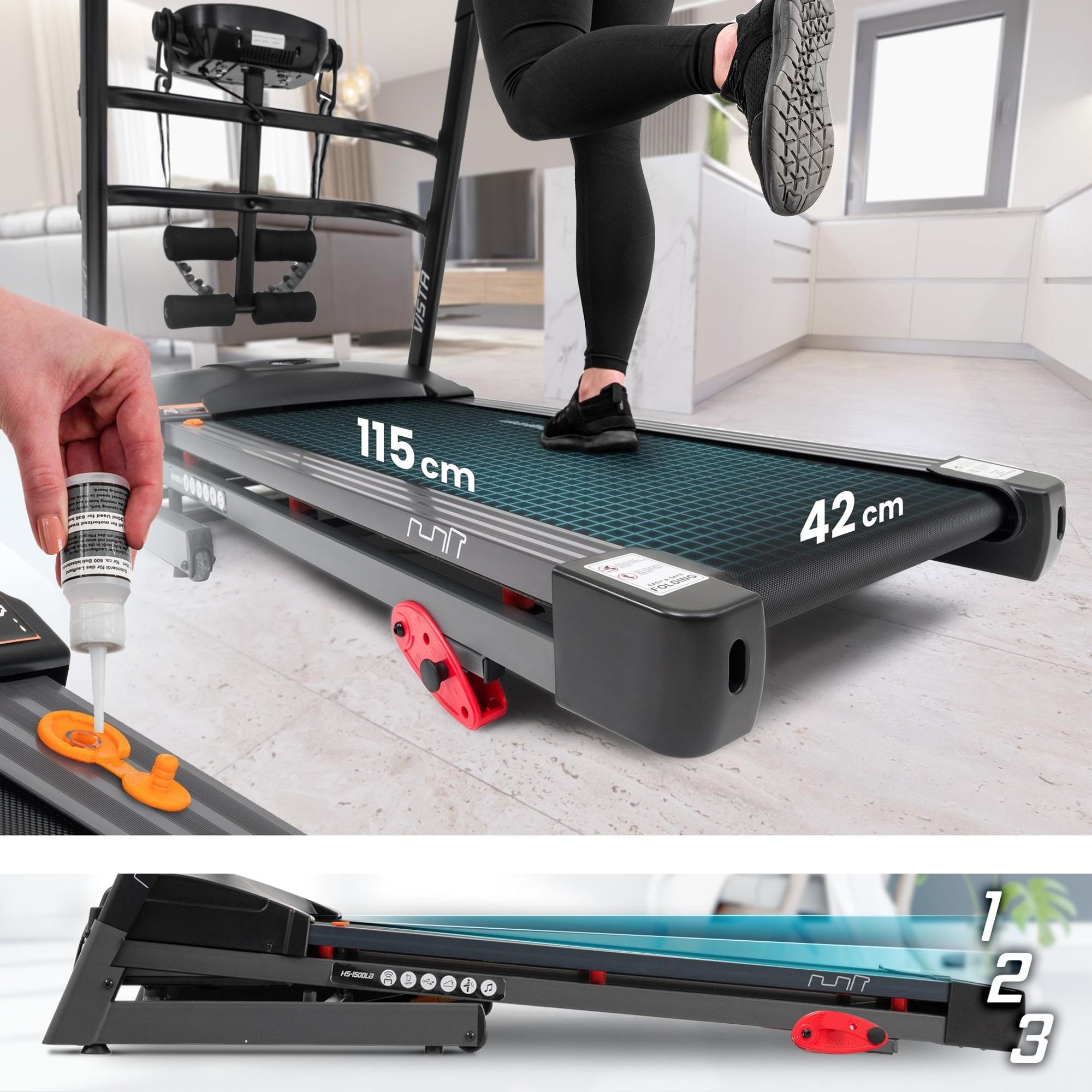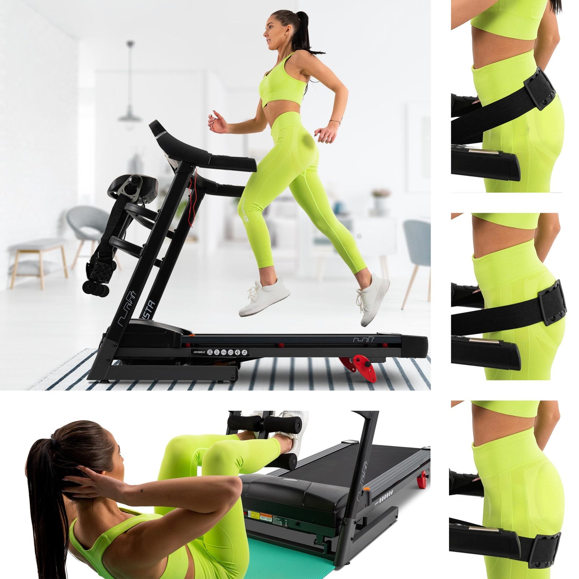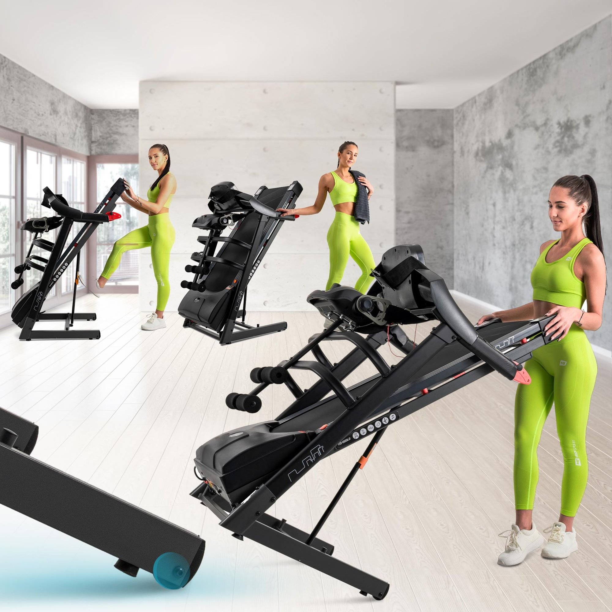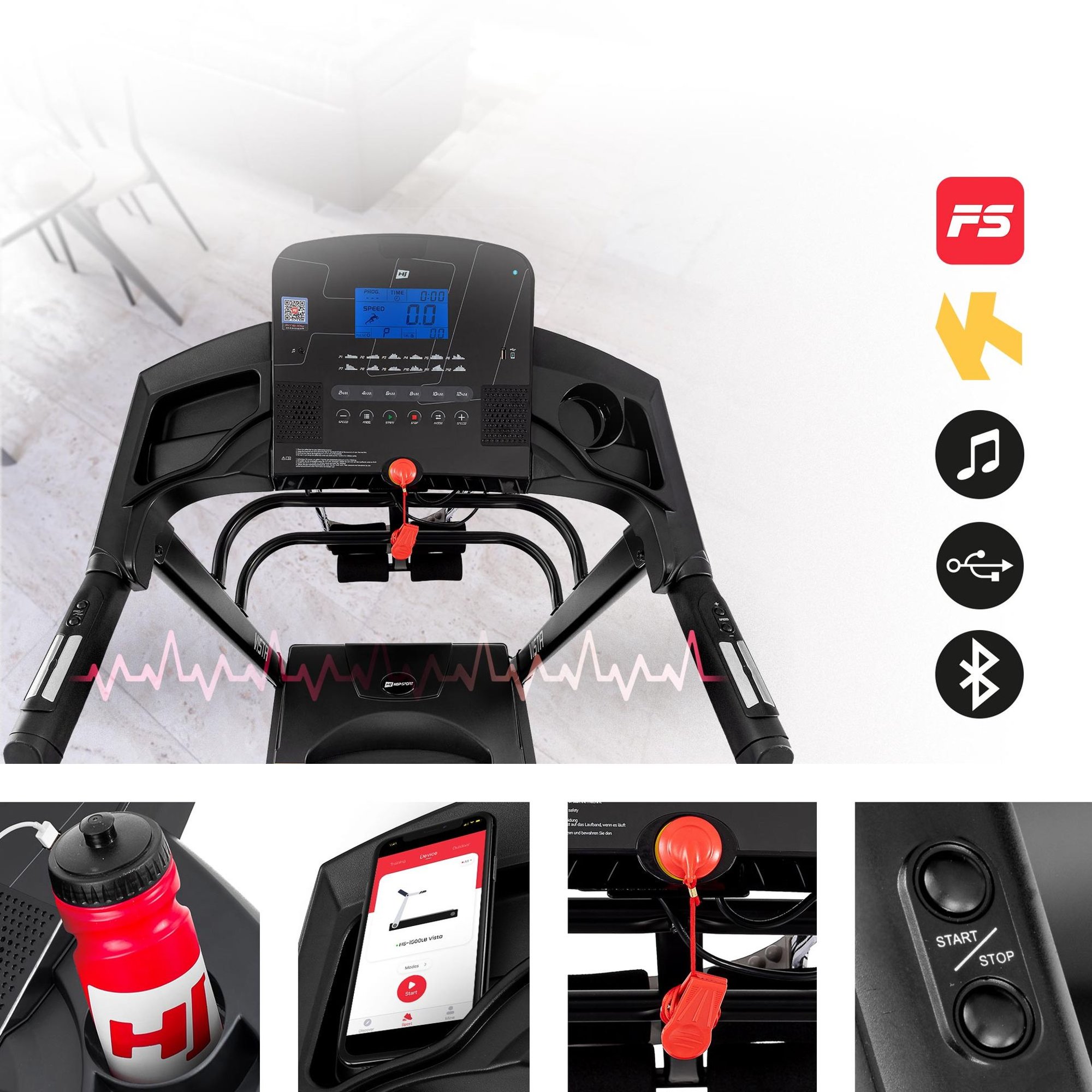 La cinta de correr está equipada con un sistema de amortiguación interno, lo que hace que los entrenamientos sean seguros para las articulaciones. El motor DC utilizado con una potencia máxima de 2.0 HP permite alcanzar velocidades desde 0.8 km/h hasta incluso 16 km/h. Por lo tanto, es ideal para el entrenamiento en casa tanto para personas mayores como para corredores experimentados.