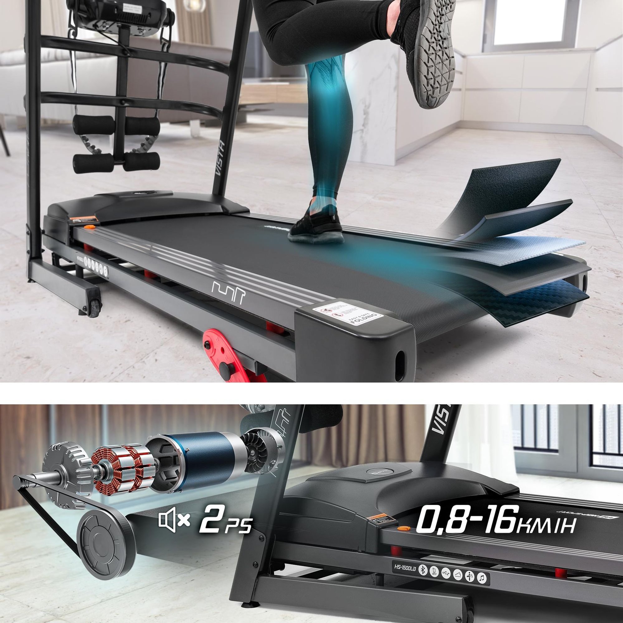 Cinta de correr HS-1500LB Vista con sistema de plegado y ordenador con Bluetooth y 12 programas de entrenamiento, equipada con un motor de 2HP y velocidad máxima de 16km/h.