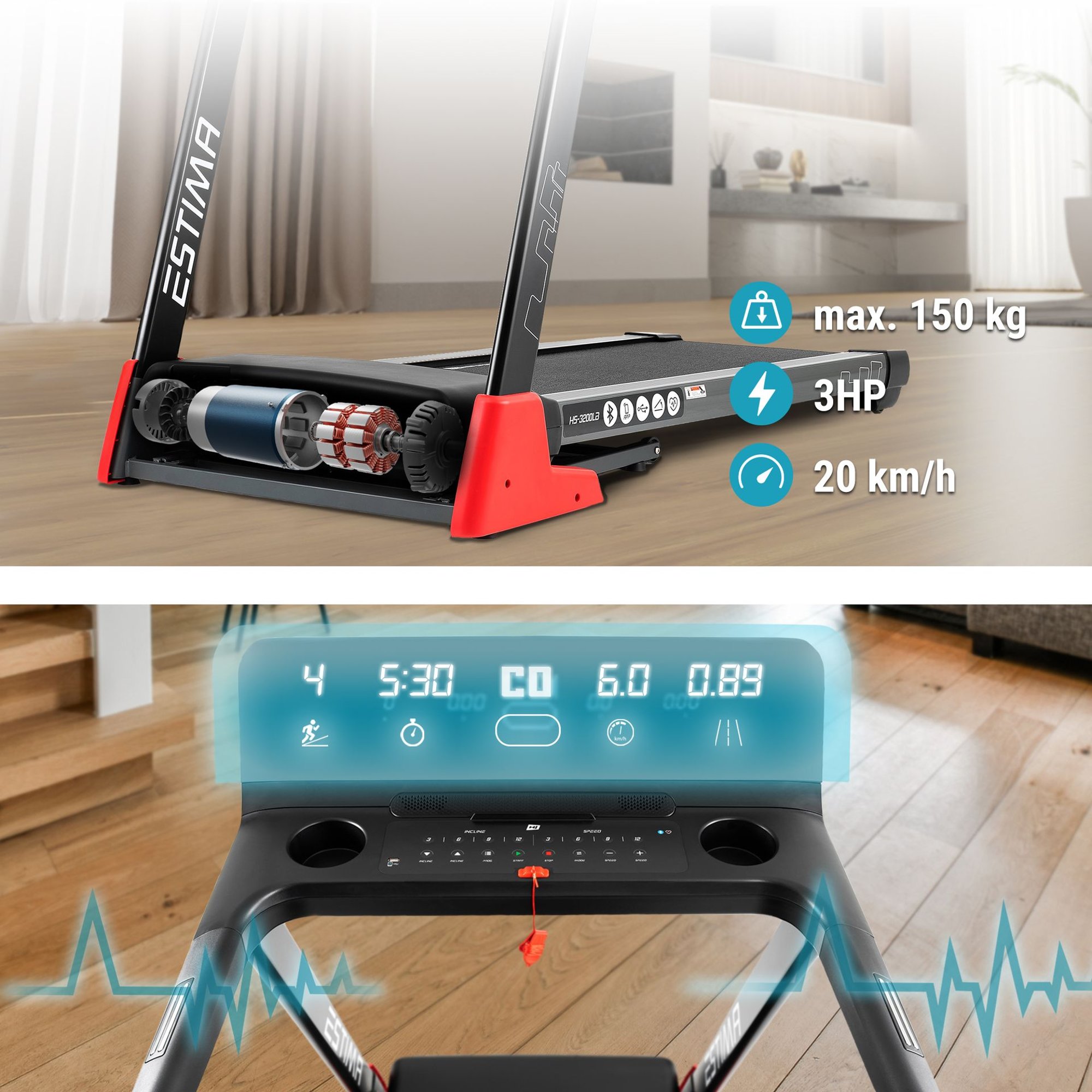 Cinta de correr eléctrica HS-3200LB Estima tes un equipo de fitness creado pensando en el entrenamiento en casa, equipado con un sistema de plegado seguro y un motor potente de 3HP, que permite alcanzar velocidades de hasta 20 km/h. La cinta de correr Estima cumplirá con tus expectativas gracias a una serie de comodidades como: un gran panel de control legible que se conecta con aplicaciones de entrenamiento FitShow y Kinomap, reducción de impactos proporcionada por el sistema de amortiguación interno, o una amplia banda de correr que garantiza libertad de movimiento durante sesiones de entrenamiento intensas. La cinta de correr recreativa HS-3200LB es una excelente alternativa para los entrenamientos de carrera al aire libre, que ahora puedes realizar de manera segura y cómoda en la tranquilidad de tu hogar.