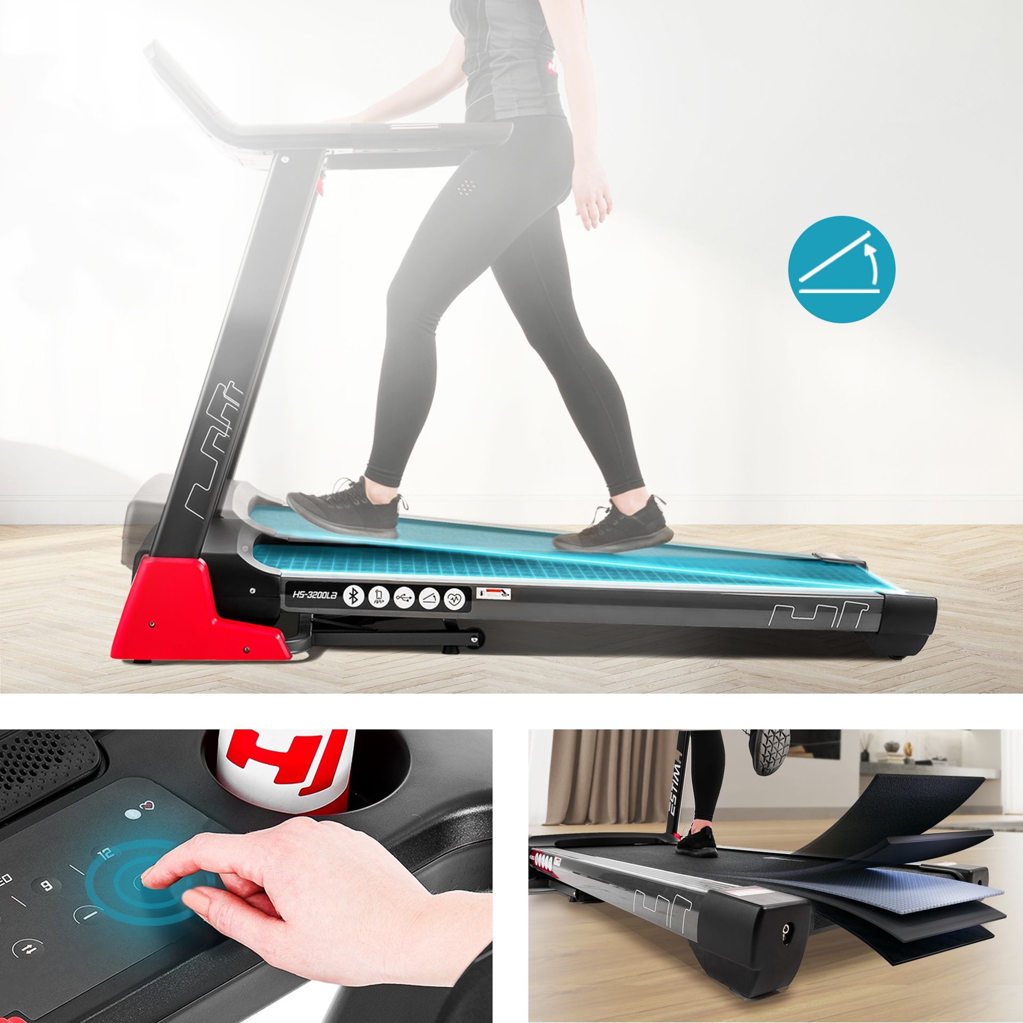 Cinta de correr plegable HS-3200LB Estima con aplicaciones, motor de 3HP y velocidad de hasta 20km/h. ¡Entrena con Hop-Sport!