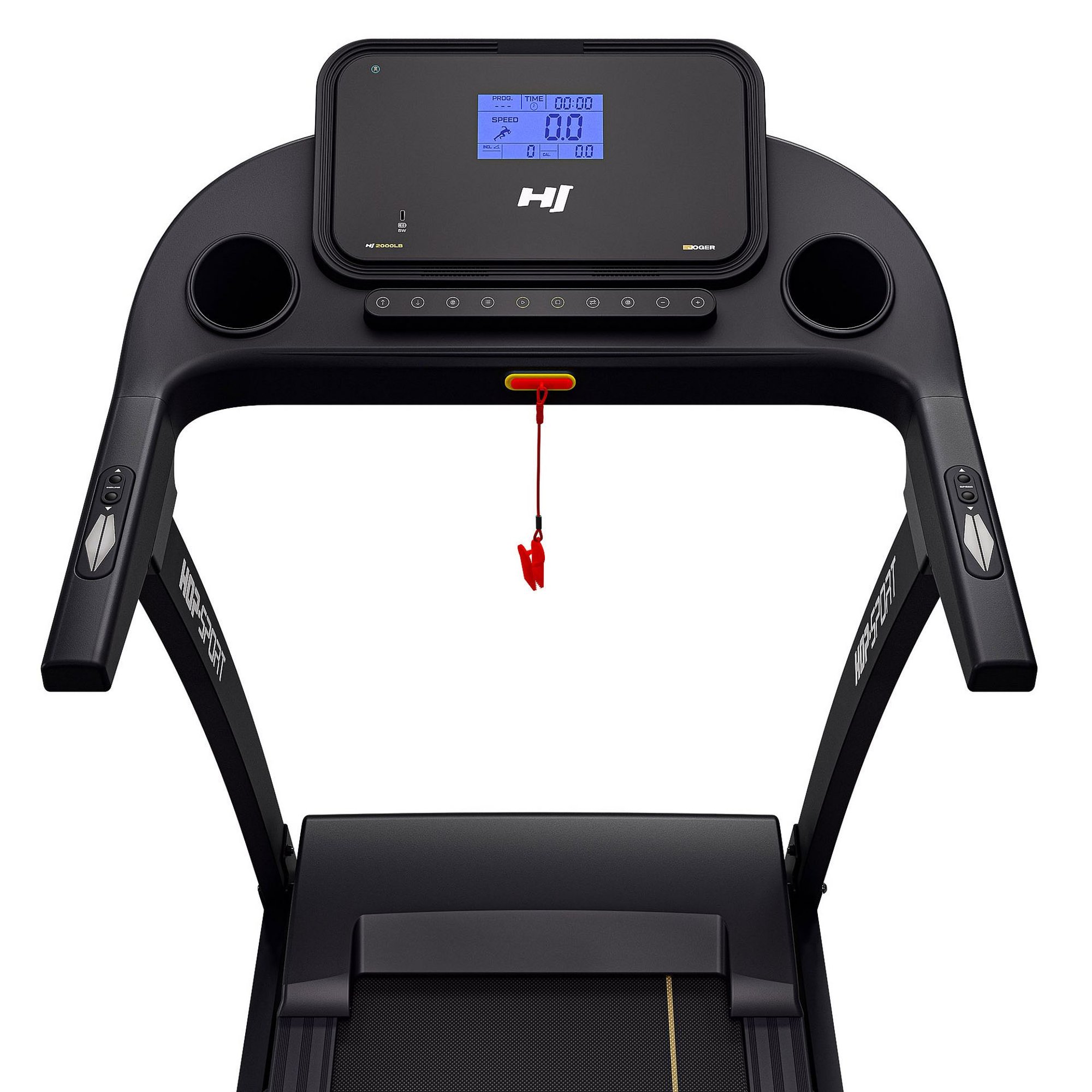 La cinta de correr eléctrica HS-2000LB Joger está equipada con un ordenador de entrenamiento claro y fácil de usar. Muestra todos los datos clave: velocidad, tiempo, distancia, calorías quemadas, ángulo actual de inclinación de la cinta e incluso el nivel de grasa corporal (IMC). También dispones de 15 planes de entrenamiento predefinidos que permiten entrenar de forma variada, desde una caminata tranquila hasta una carrera intensa. Además, el Bluetooth permite entrenar con las aplicaciones compatibles Kinomap, FitShow y Zwift. Solo tienes que descargar una de ellas en tu dispositivo móvil, conectarla por Bluetooth y tendrás acceso a rutas virtuales, desafíos y entrenamientos con otros usuarios. Un valor añadido es el soporte para el teléfono y el puerto USB-C, que permite cargar dispositivos durante el ejercicio.