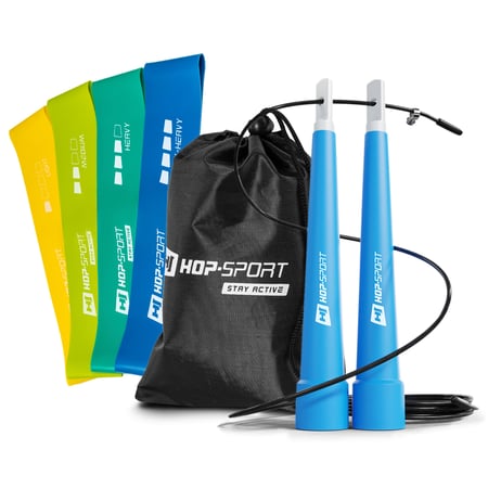 ¿Quieres mejorar tu condición física y trabajar en tu figura? Con el conjunto de la marca Hop-Sport será efectivo y agradable. El conjunto consta de una cuerda para saltar y un juego de bandas de resistencia, además de una bolsa para guardarlas. Los ejercicios con este equipo se adaptan fácilmente a tu nivel de habilidad, puedes realizar entrenamientos de diferentes niveles de intensidad. Gracias a la bolsa, puedes empacar fácilmente los accesorios y llevarlos contigo a donde sea que te lleven tus pies.