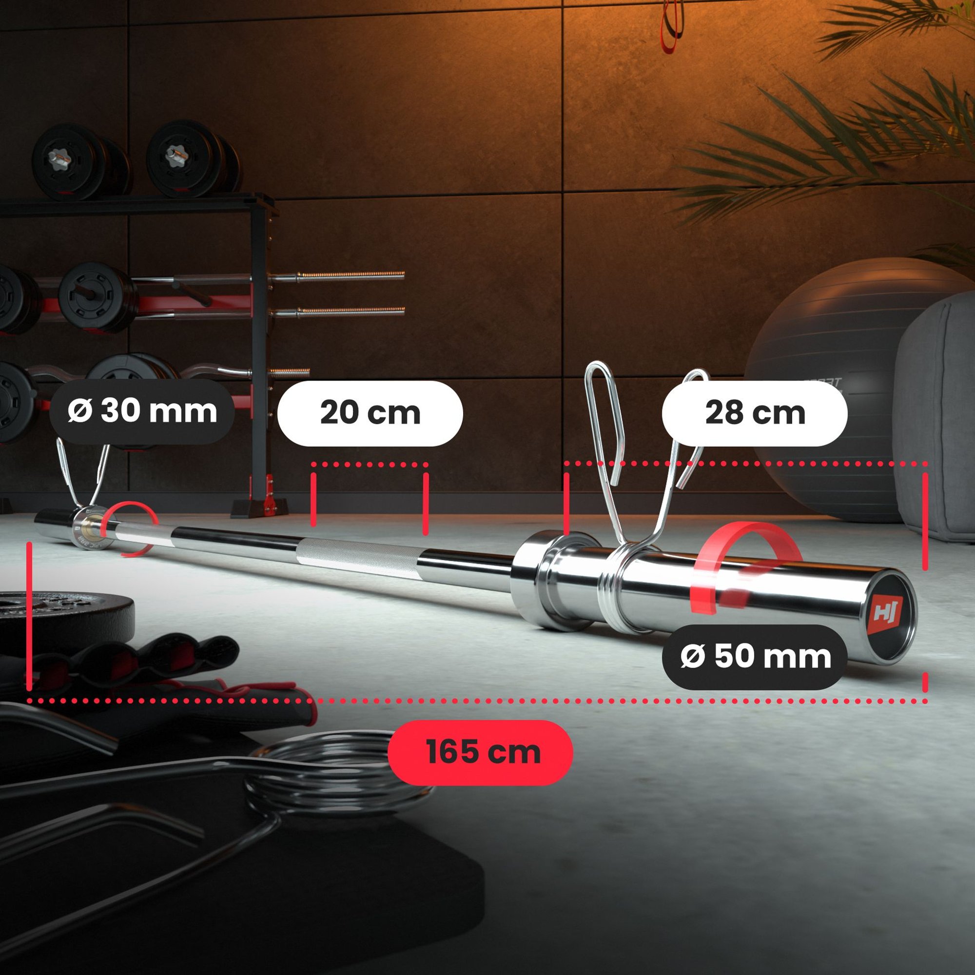 La barra olímpica recta de 165 cm cumple con las expectativas tanto de principiantes como de atletas profesionales. Entre sus características más importantes se destacan: