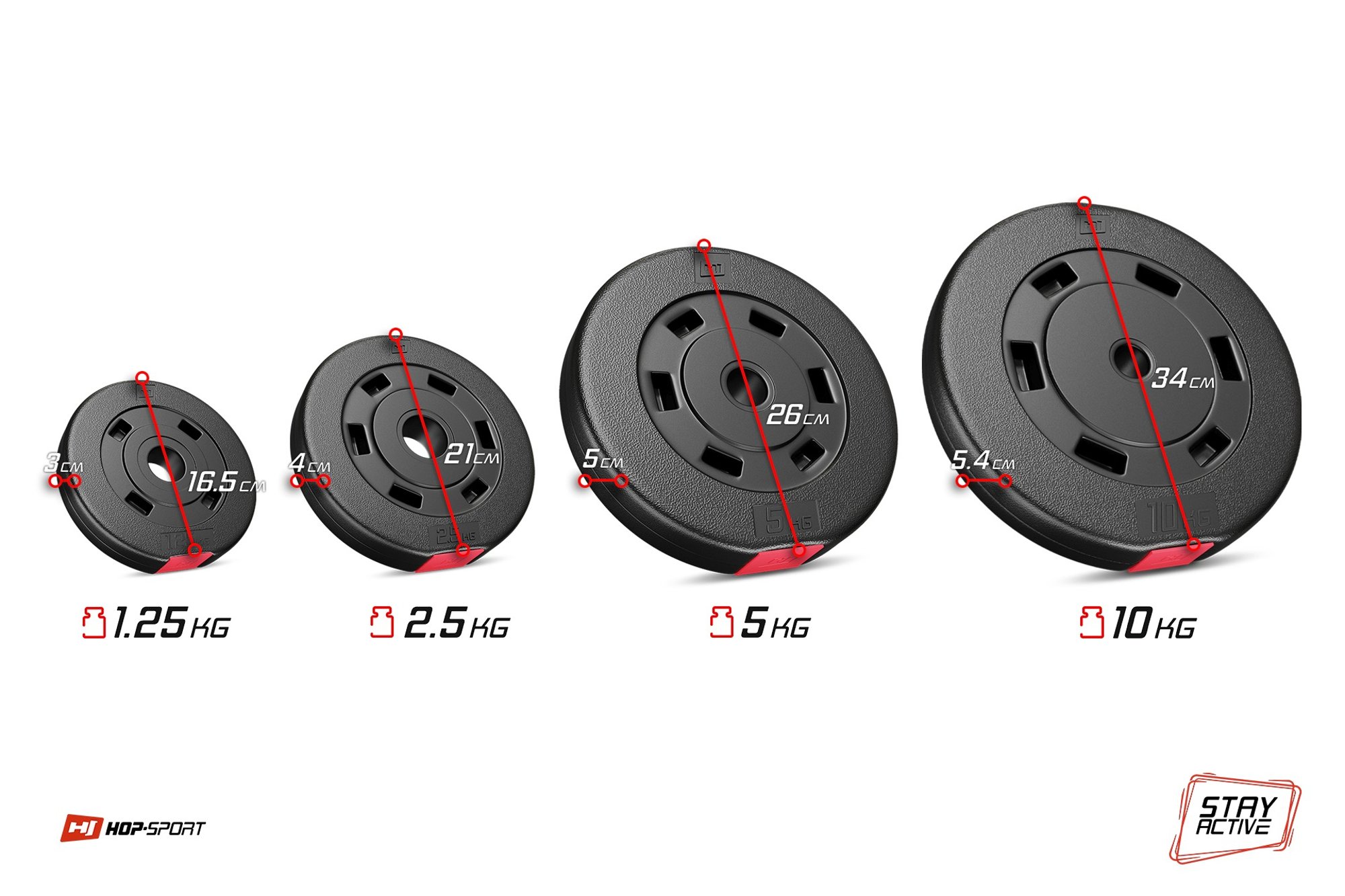Levantar pesas trae los efectos esperados, cuando se incrementa gradualmente la carga. El conjunto de pesas Premium 75 kg de la marca Hop-Sport es un elemento ideal para equipar un gimnasio en casa, que permite un entrenamiento de fuerza integral. El conjunto Premium incluye discos recubiertos de material sintético y barras profesionales, recta y curva. Los entrenamientos con el conjunto Premium son cómodos y seguros.