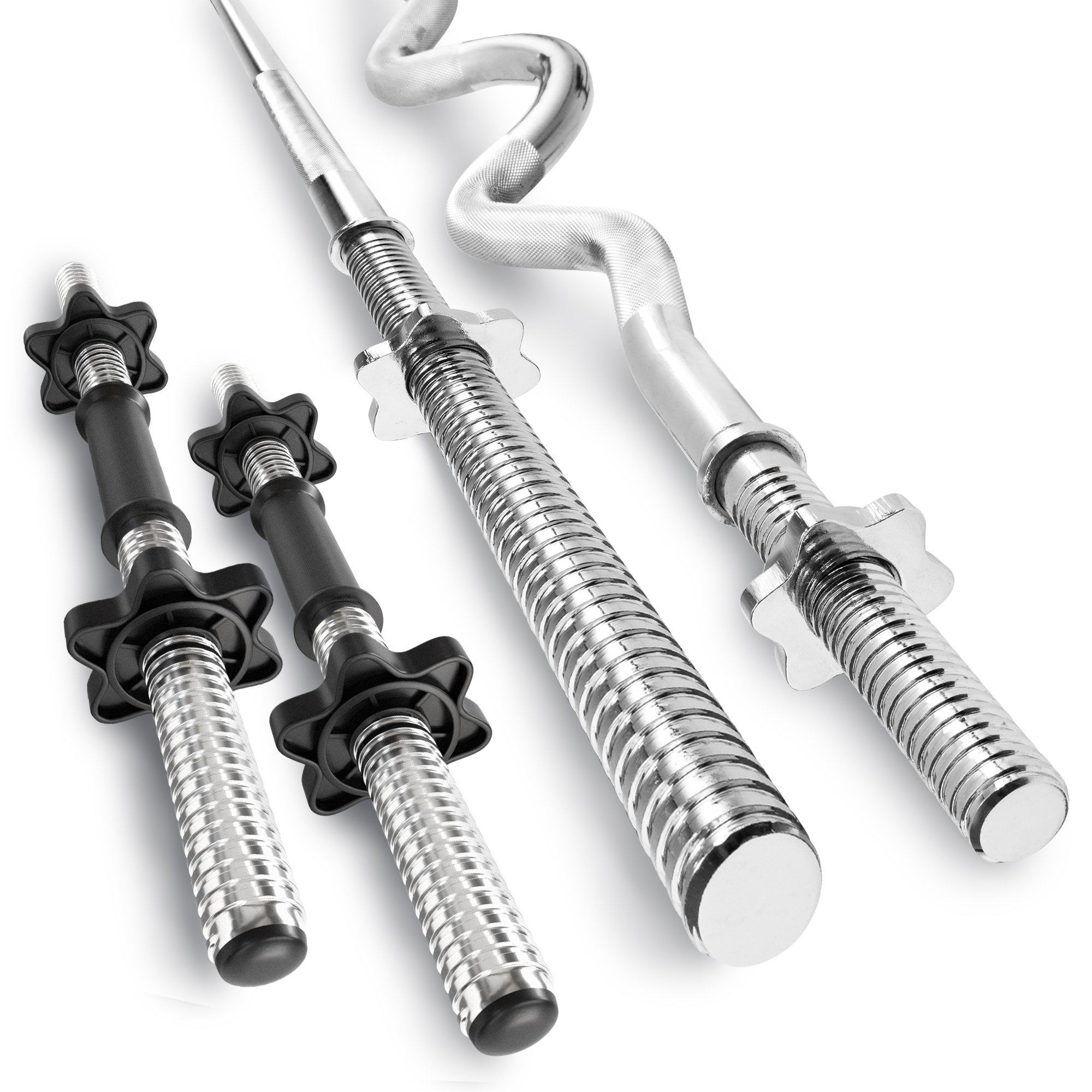 Las dimensiones del equipo han sido perfeccionadas de tal manera que está máximamente adaptado para ejercicios diarios en el gimnasio en casa. La barra ligeramente curva de 120 cm es ideal para pesas , y su construcción permite entrenar principalmente las partes superiores del cuerpo. Al ejercitarse con la barra ligeramente curva, se involucran especialmente los bíceps, tríceps y brazos, sin exponer las muñecas a una carga excesiva.
