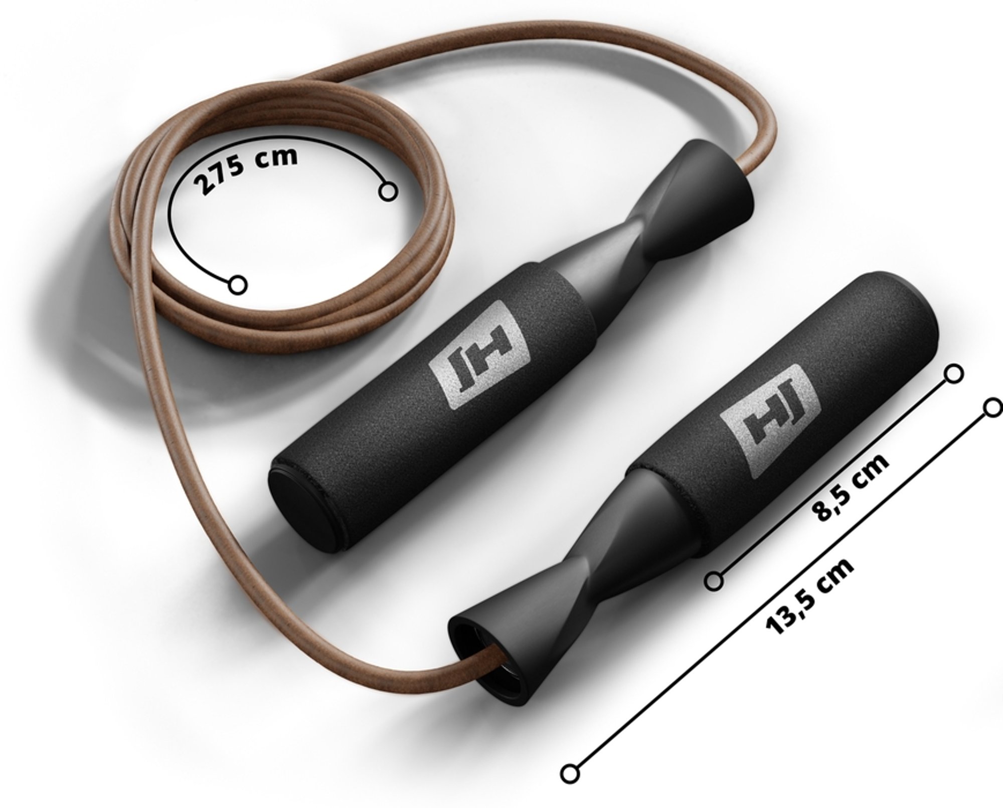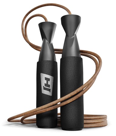 Cuerda para saltar de cuero Hop-Sport con una longitud de cuerda de 275 cm. Gracias a sus cómodos mangos, sistema de rodamientos y cuerda de cuero, el funcionamiento de la cuerda es rápido y eficiente