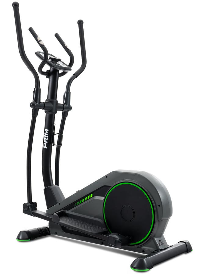Gracias a las plataformas anchas y antideslizantes para los pies con ajuste, el equipo puede ser utilizado por usuarios de diferentes alturas. Además, en la elíptica Prim, para mayor seguridad, se han cubierto las articulaciones. La comodidad del entrenamiento está garantizada por los mangos cubiertos de espuma suave y el soporte para botella de bebida.