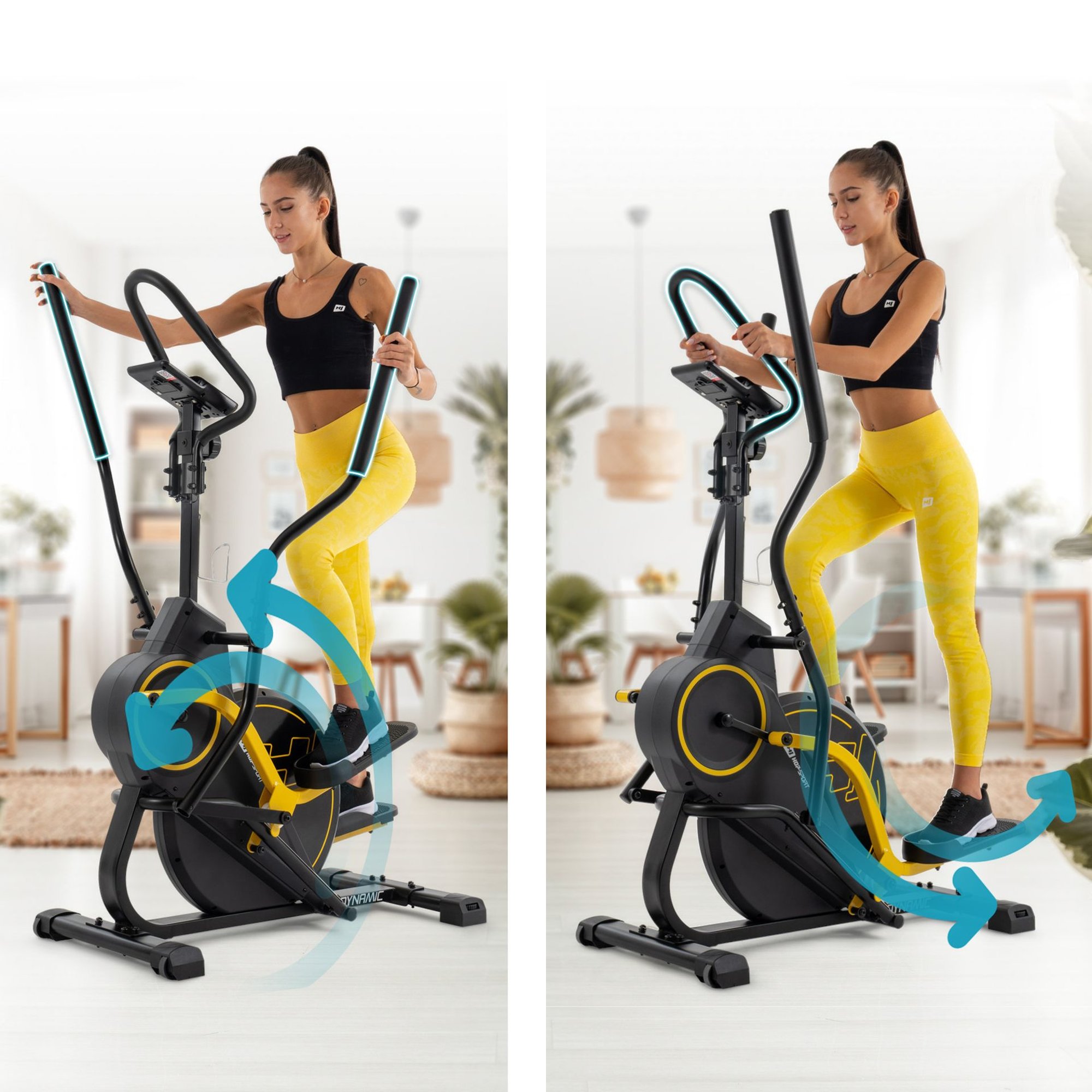 Climber Dynamic es una increíble máquina de fitness que combina las funciones de un stepper y una elíptica. Está equipada con una computadora de entrenamiento intuitiva con soporte para dispositivos móviles. Basta con un vistazo y sabrás cuántas calorías has quemado y qué distancia has recorrido. Los sensores integrados en los mangos también permiten medir el pulso durante el entrenamiento. Ejercítate como te gusta, involucrando músculos adicionales con las empuñaduras perfiladas y el cómodo agarre para las manos. La regulación manual de la resistencia te permitirá ajustar la intensidad del entrenamiento a tus preferencias. Climber es un equipo de fitness extremadamente seguro y cómodo de usar. Todo gracias a su innovadora construcción de doble riel, plataformas antideslizantes, carcasa de la rueda de inercia y sistema de estabilización. Climber Dynamic es adecuado para uso en el hogar, ya que su construcción es mucho más pequeña en comparación con las elípticas clásicas. Además, cuenta con ruedas de transporte que permiten moverlo a otra habitación.