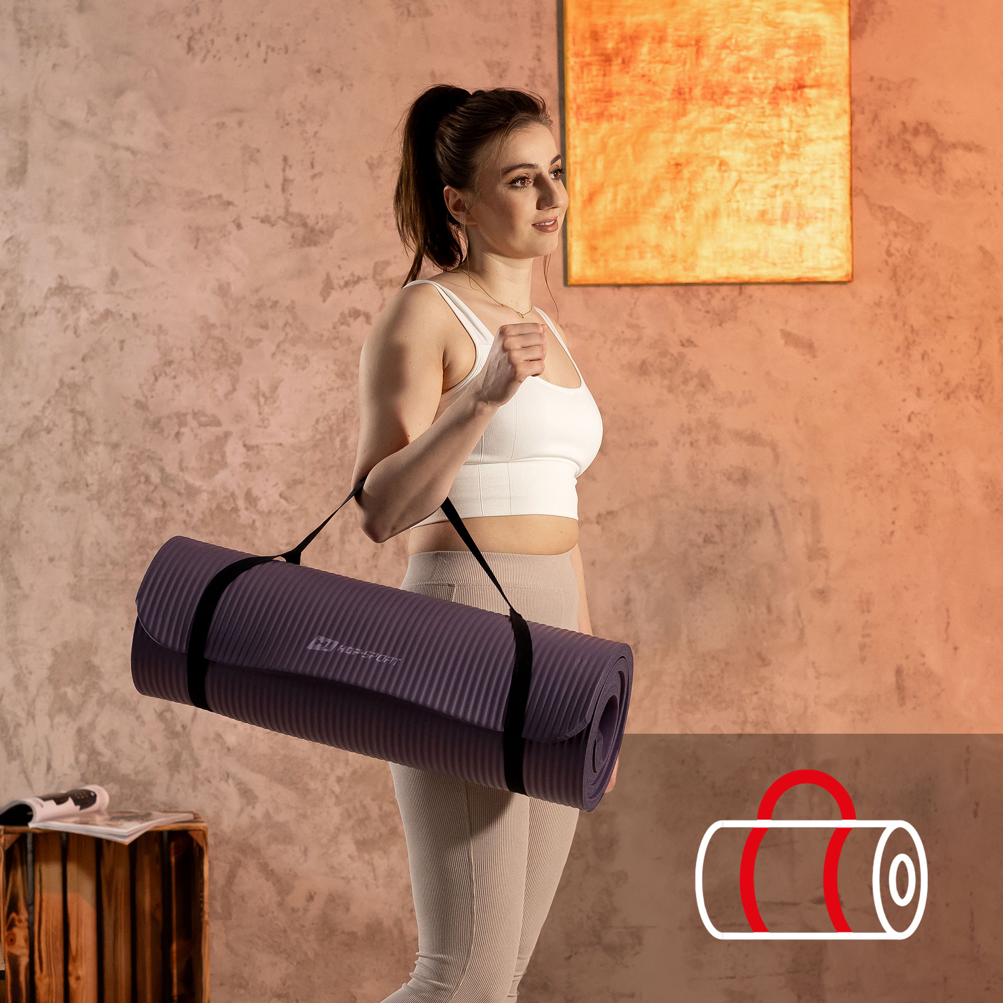 Puedes llevar cómodamente la esterilla Hop-Sport contigo a clases de yoga, fitness, al parque o a la playa. No necesitas una bolsa especial ni una funda. Con la esterilla NBR de 1 cm recibirás una correa de transporte que facilitará llevarla contigo a donde lo necesites.