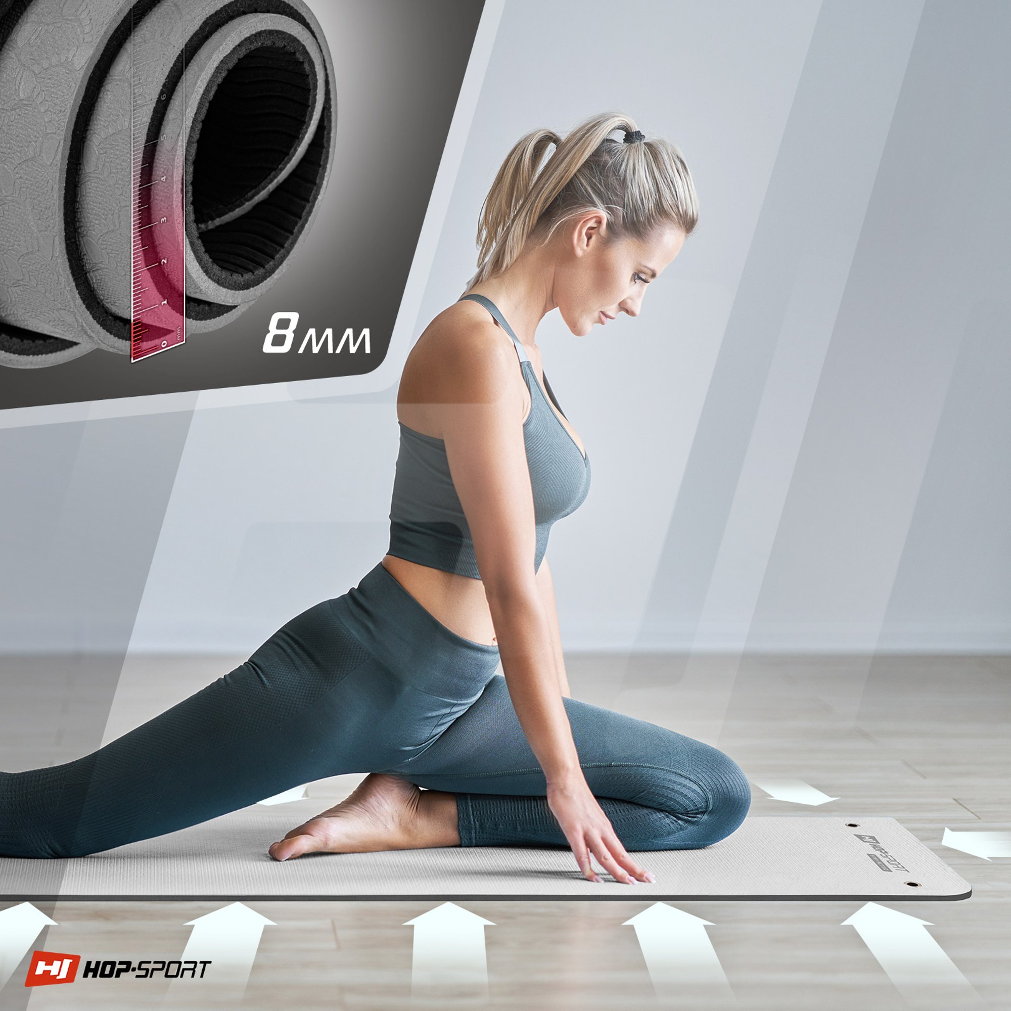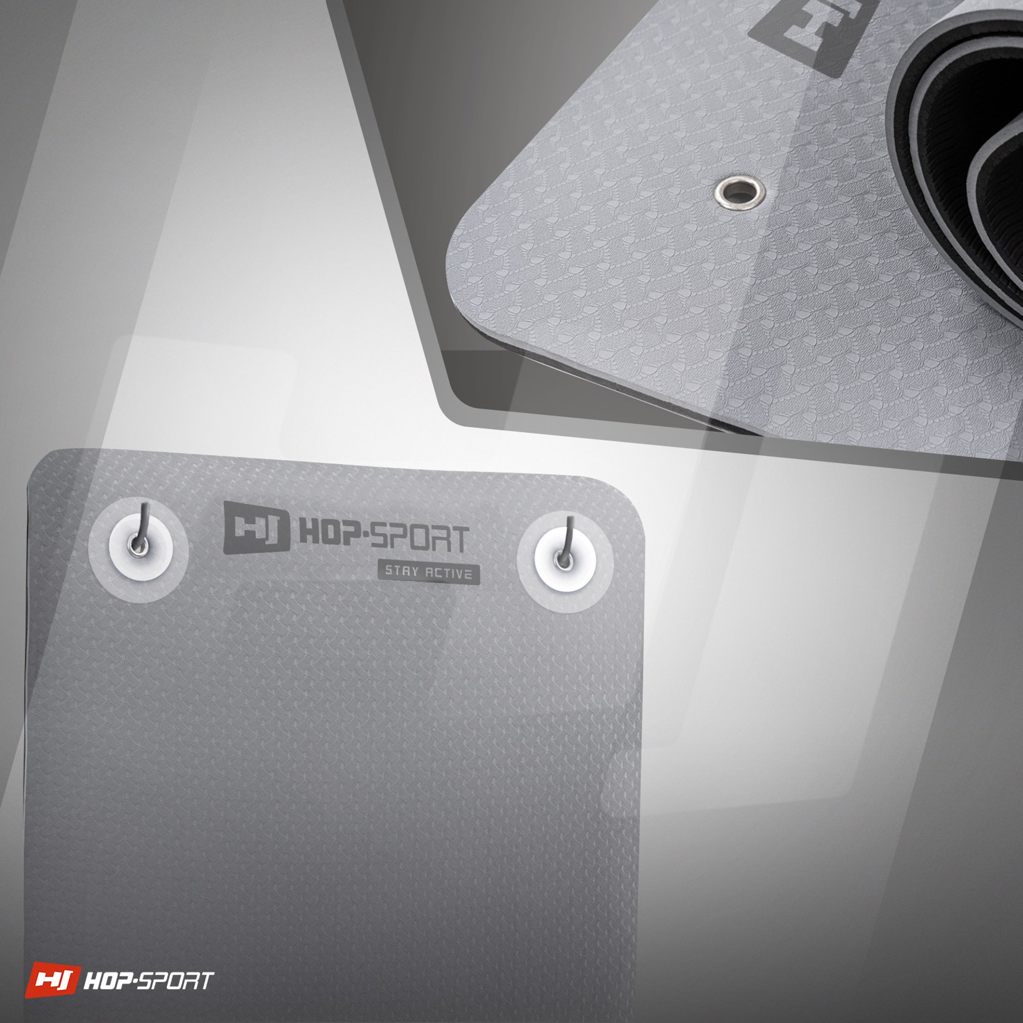 Esterilla TPE con agujeros 0,8 cm - gris HS-T008GM es una esterilla de ejercicios de alta calidad con dimensiones de 183 x 61 cm, hecha de espuma TPE de alta calidad , sin sustancias aromáticas. Ideal para yoga, fitness, pilates y rehabilitación. La esterilla HS-T008GM aumentará tu estabilidad y seguridad durante los entrenamientos, proporcionando una amortiguación adecuada de los movimientos y aislamiento del suelo. Debido a las propiedades de la espuma TPE, no absorbe el sudor ni la humedad y es extremadamente fácil de limpiar. Además, este modelo está equipado con dos orificios funcionales, gracias a los cuales puedes colgar cómodamente la esterilla en un perchero.