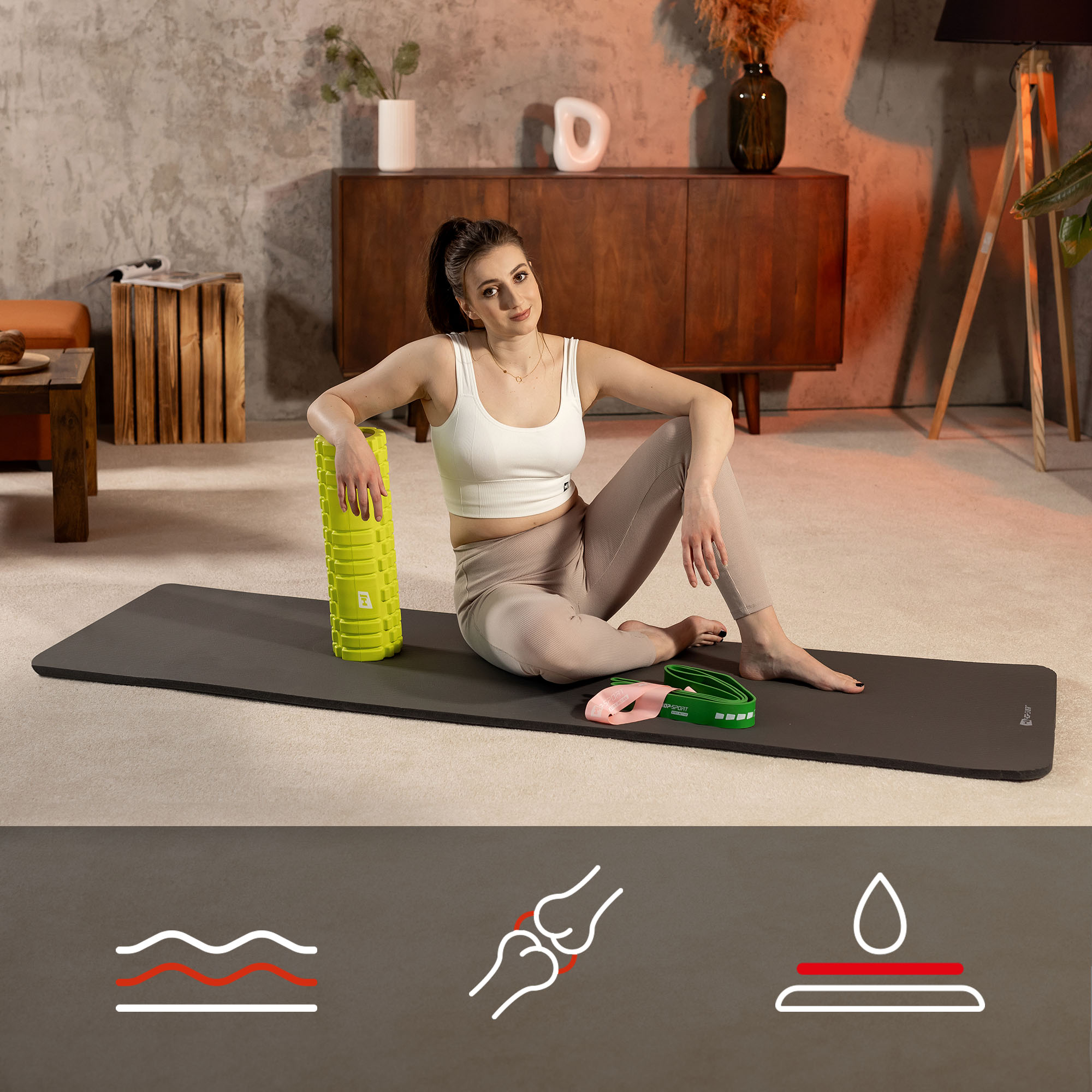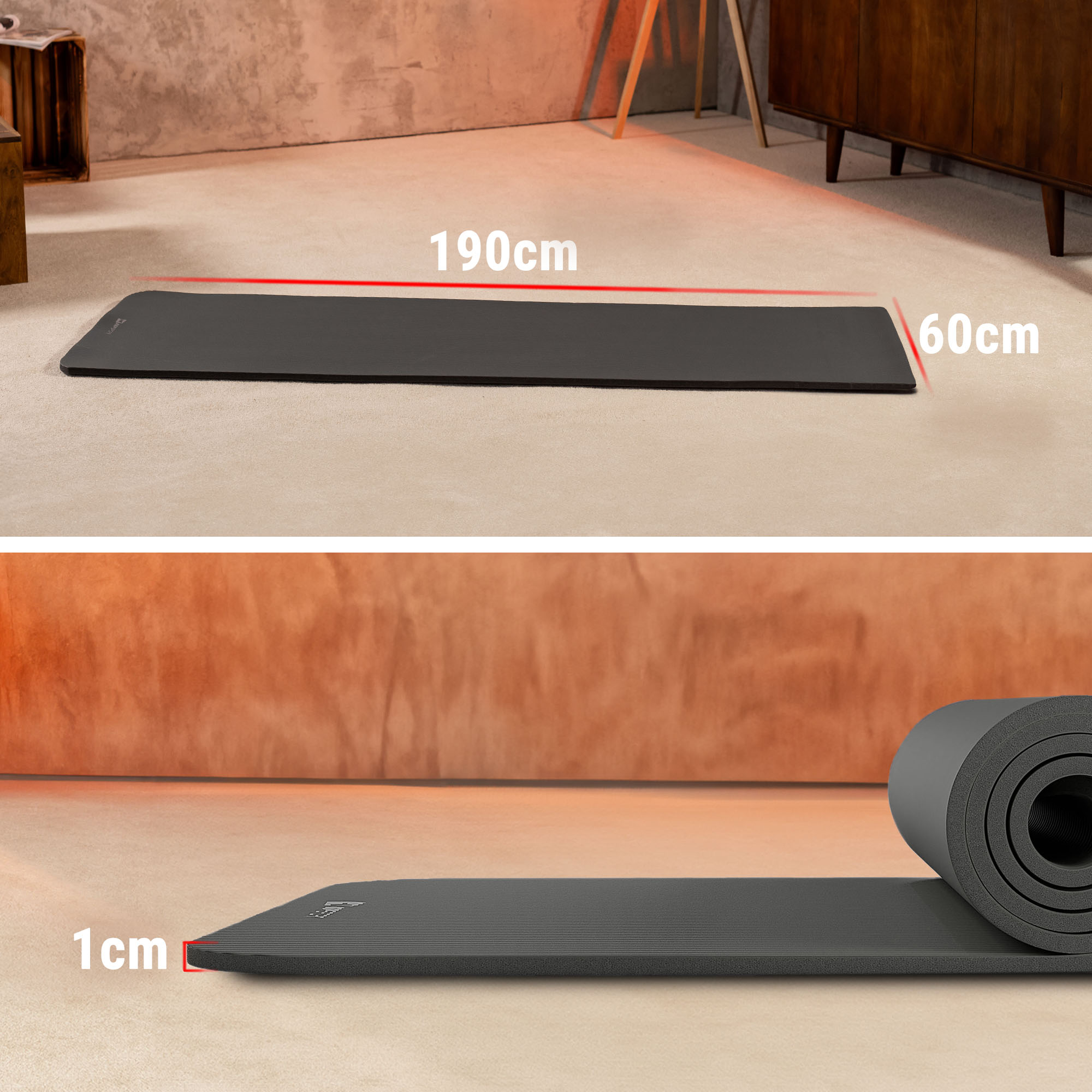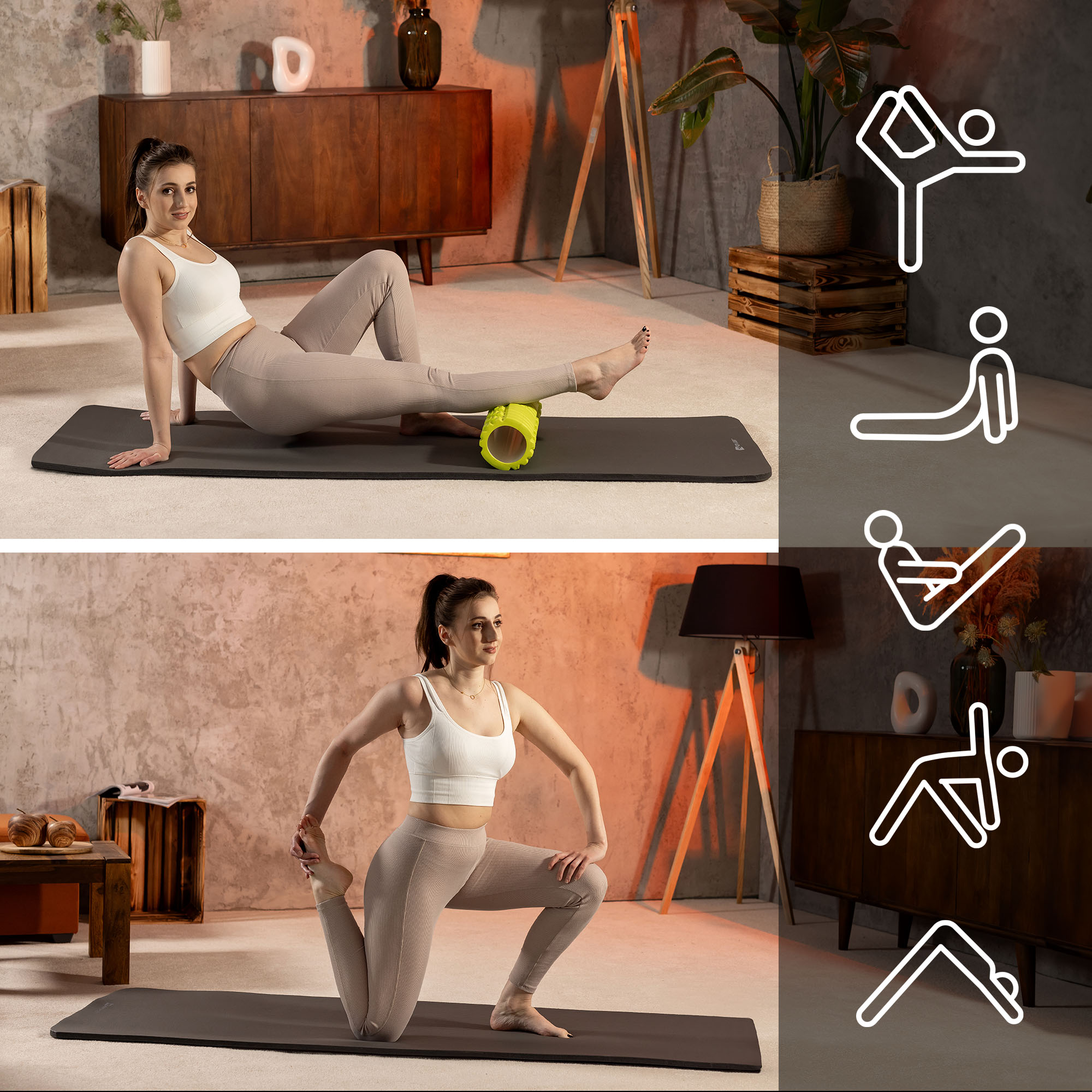 La esterilla NBR de 1 cm se puede utilizar en varios tipos de ejercicios. Puedes entrenar en ella tanto yoga, pilates como realizar los llamados ejercicios de bajo impacto, como planchas, inclinaciones o ejercicios abdominales. La combinación del grosor de 1 cm con las dimensiones más grandes de la esterilla garantiza comodidad y seguridad en cada sesión de entrenamiento. Además, la estructura única de la esterilla proporciona un excelente agarre, lo que permite mantener posiciones estables y realizar movimientos o asanas complejas con precisión.