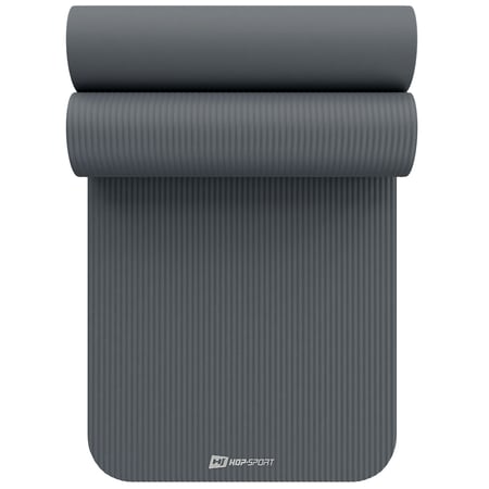 Esterilla NBR antideslizante y duradera de color gris de 1 cm de grosor de la marca Hop-Sport. Dimensiones adaptadas para garantizar comodidad y conveniencia durante los ejercicios.