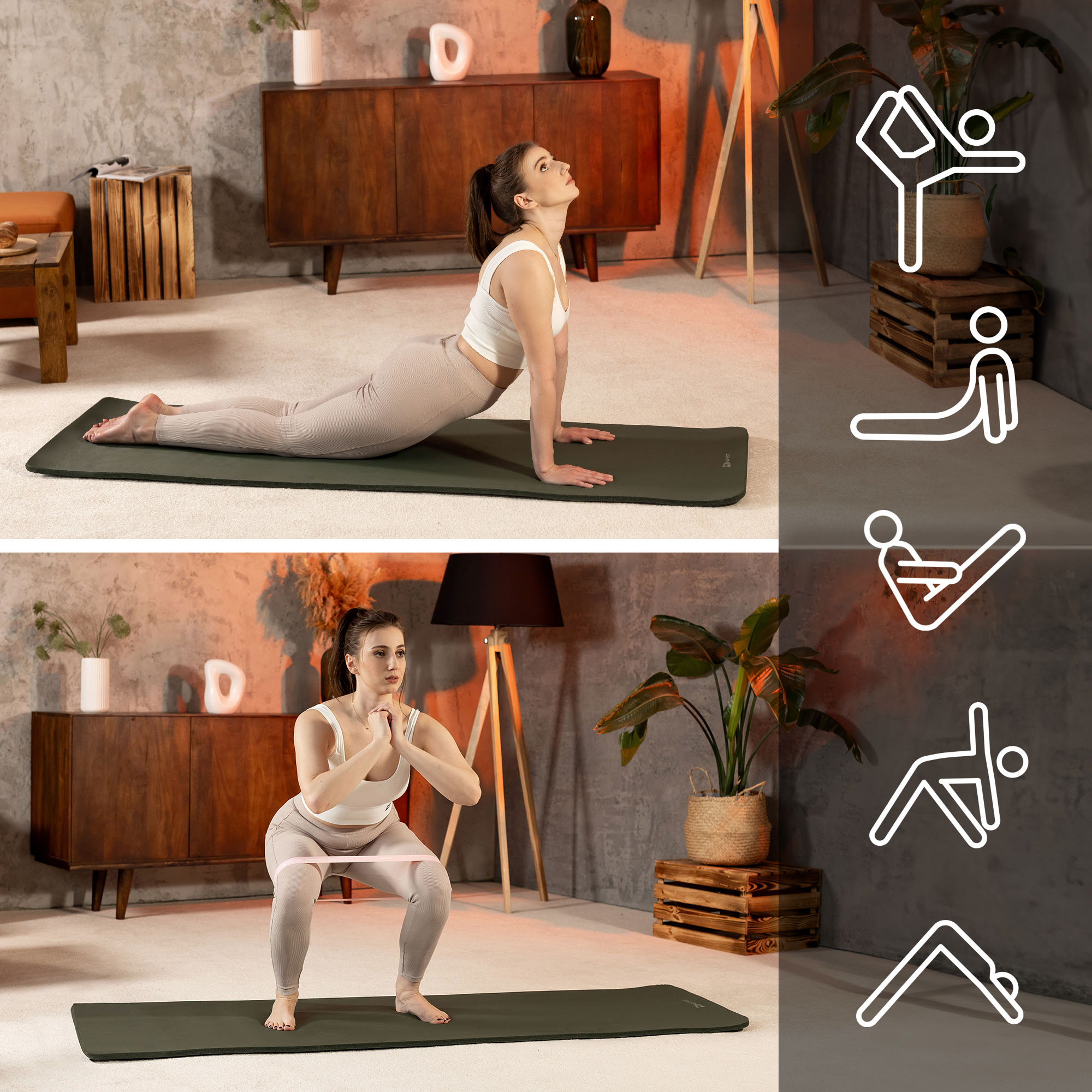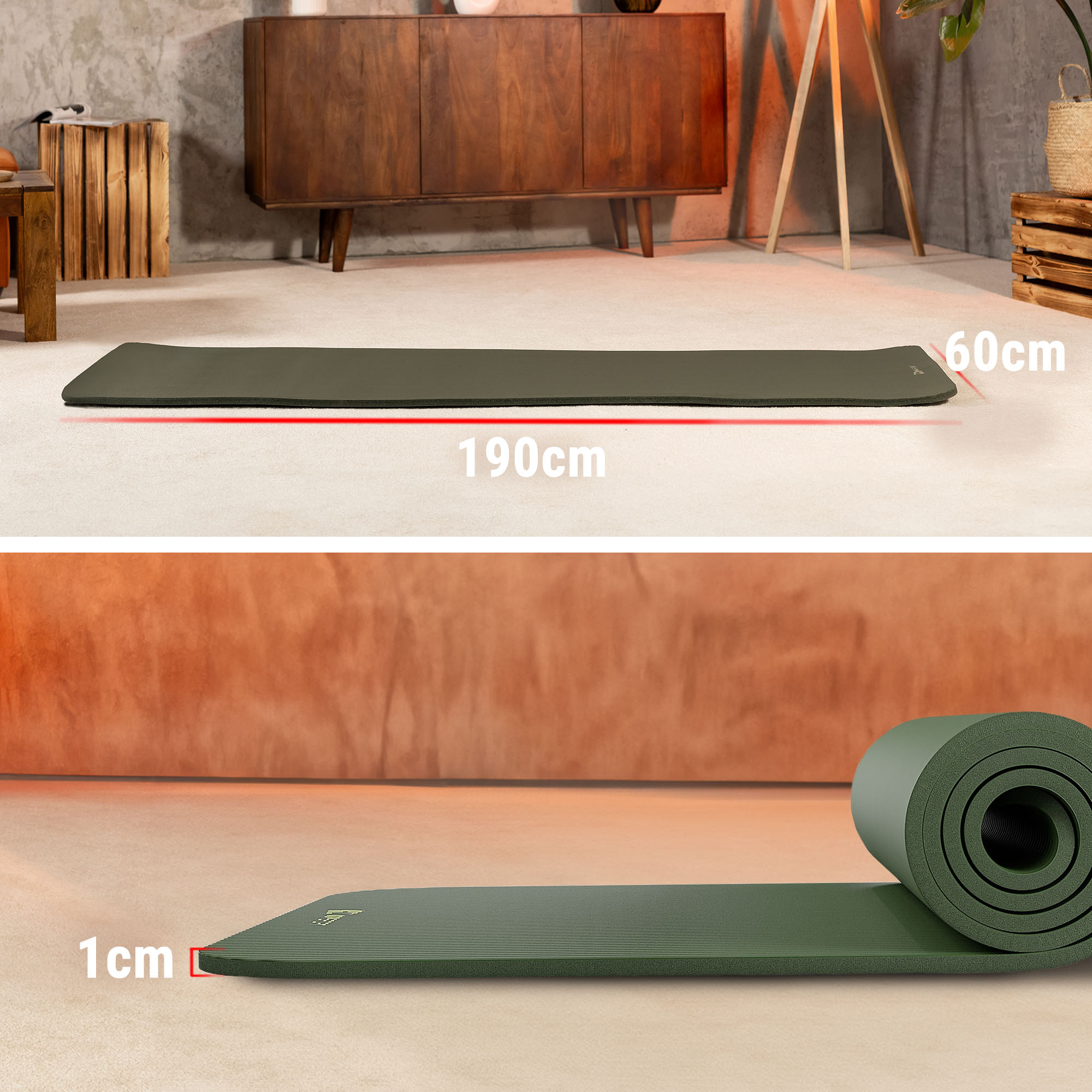 La esterilla NBR de 1 cm se puede utilizar en varios tipos de ejercicios. Puedes entrenar en ella tanto yoga, pilates como realizar los llamados ejercicios de bajo impacto, como planchas, inclinaciones o ejercicios abdominales. La combinación de un grosor de 1 cm con las dimensiones más grandes de la esterilla garantiza comodidad y seguridad en cada sesión de entrenamiento. Además, la estructura única de la esterilla proporciona una excelente adherencia, lo que permite mantener posiciones estables y realizar movimientos o asanas complejas con precisión.