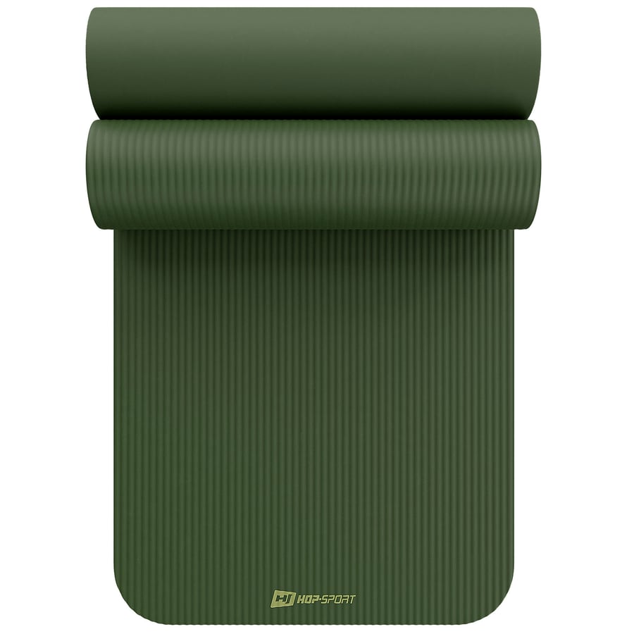 Esterilla NBR antideslizante y duradera de color verde botella con un grosor de 1 cm de la marca Hop-Sport. Las dimensiones ajustadas a tus necesidades aseguran comodidad y conveniencia durante los ejercicios.