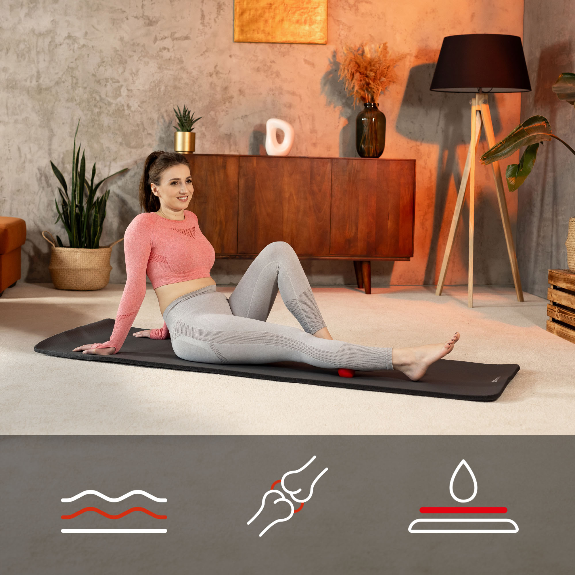 La alfombrilla NBR de 2 cm protege eficazmente las articulaciones y los músculos durante diversos tipos de ejercicios. Puedes realizar en ella tanto yoga, pilates, cardio dinámico, como ejercicios de fuerza, que generan mayores cargas y requieren un aislamiento y amortiguación adecuados del suelo duro. La combinación del grosor de 2 cm con las mayores dimensiones de la alfombrilla garantiza comodidad y seguridad en cada sesión de entrenamiento. Además, la estructura única de la alfombrilla proporciona una excelente adherencia, lo que permite mantener posiciones estables y realizar movimientos complejos con precisión durante los entrenamientos de fuerza.