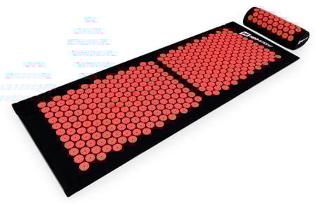 El conjunto XL de acupresión incluye una esterilla, almohada y funda en color rojo, diseñado para la relajación, alivia la tensión muscular y mejora la circulación sanguínea.