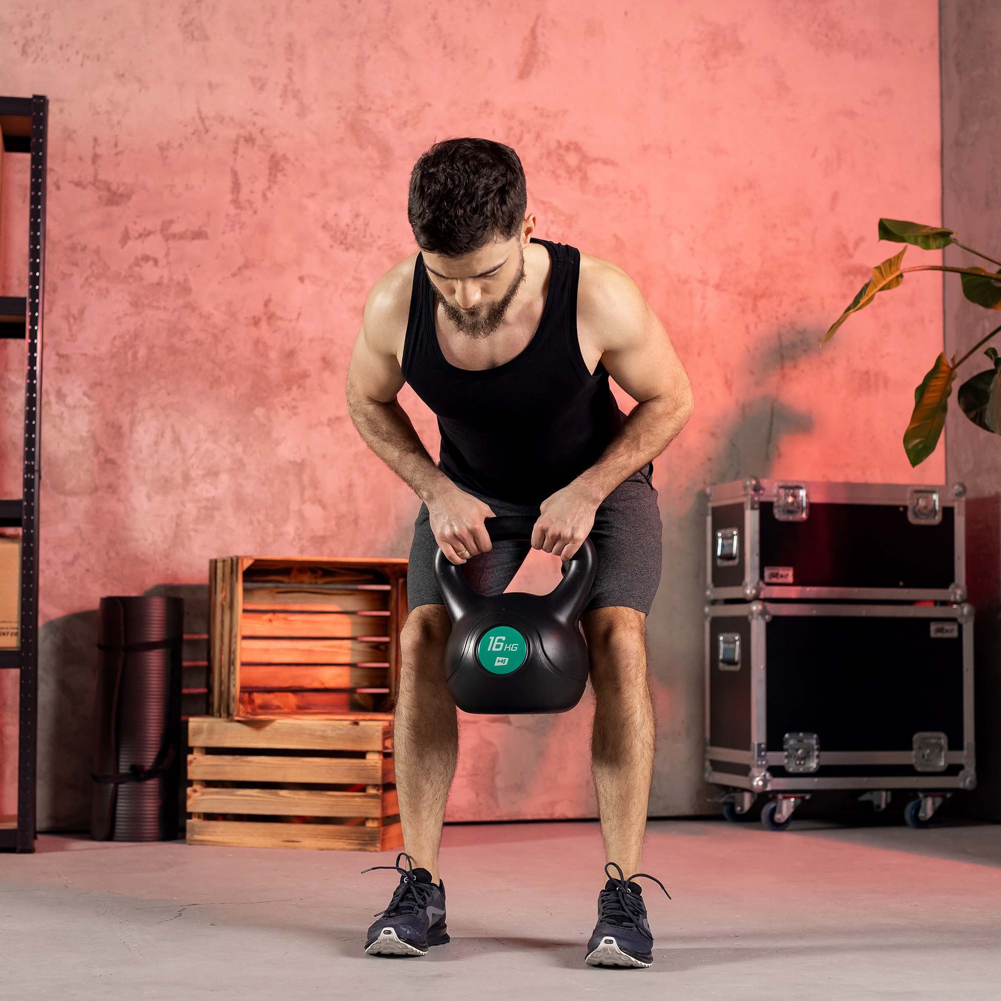 Pesas tipo kettlebell de vinilo de 16kg, los entrenamientos con kettlebells te ayudarán a fortalecer los músculos, esculpir tu figura y perder peso de manera efectiva.