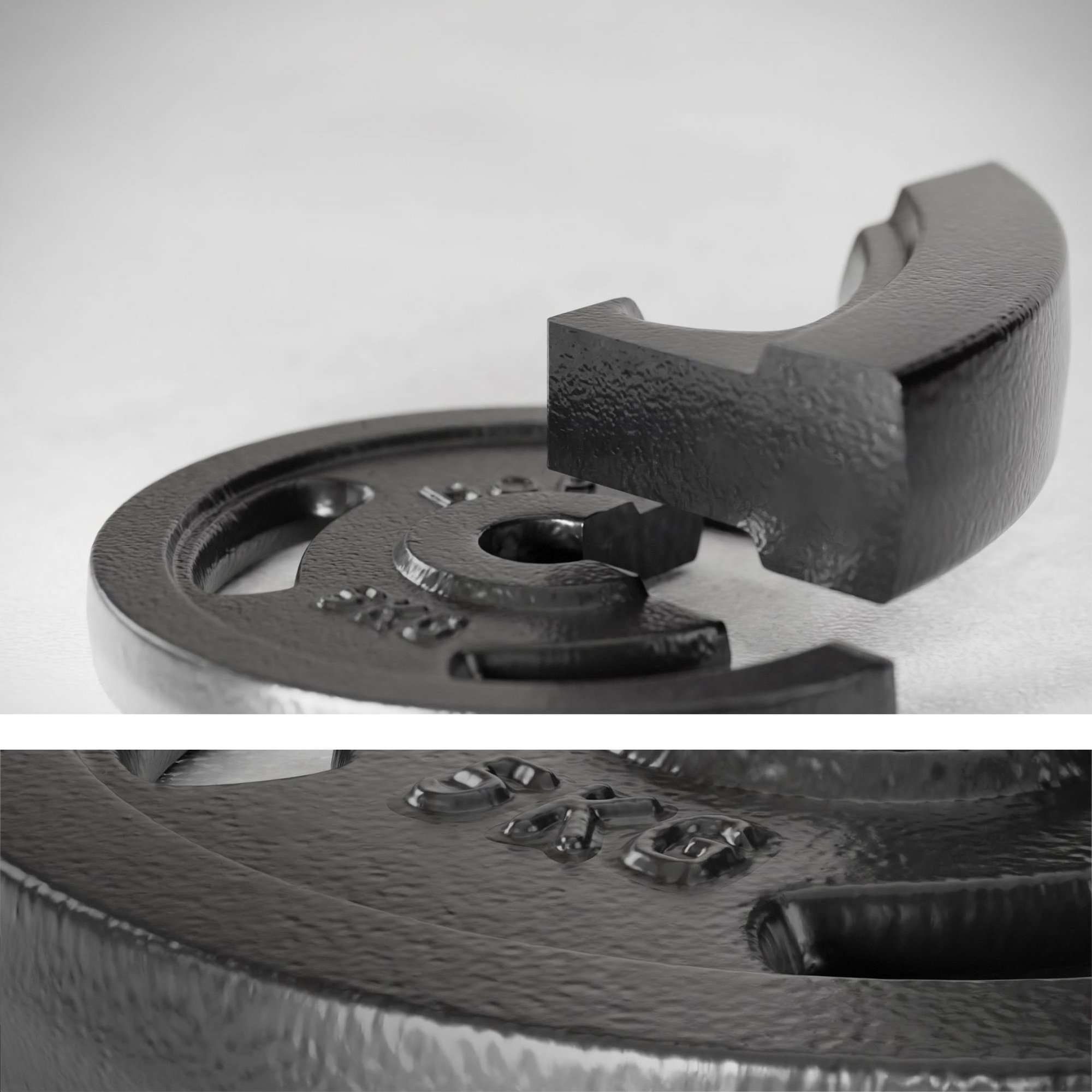 Los discos de hierro hechos de fundición completa garantizan durabilidad durante años de uso intensivo. Están cubiertos con una capa de laca resistente a astillas, que protege las cargas contra la corrosión. Además, nuestros pesos tienen grabados especiales con el indicador de peso, colocados en un lugar visible, para facilitarte el cambio rápido de discos entre sesiones de entrenamiento.