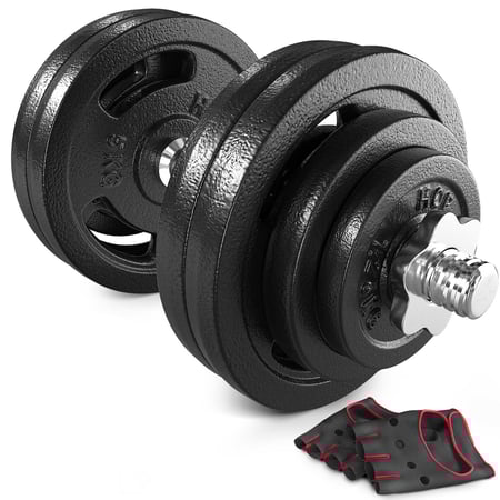 Mancuernas de hierro fundido 1x30kg es un equipo destinado al entrenamiento de fuerza, dedicado a personas que valoran la más alta calidad de fabricación y buscan un equipo que sirva durante años. Lo que distingue a las mancuernas de hierro fundido es su durabilidad y resistencia a los daños. El conjunto incluye: discos de hierro fundido sólido, cubiertos con un revestimiento anticorrosivo lacado, barra hecha de acero cromado de alta calidad con una parte de agarre antideslizante y extremos roscados, y cierres para asegurar los pesos. Para ampliar las opciones de entrenamiento, los pesos de 5 kg están equipados con asas cómodas, gracias a las cuales podrás realizar ejercicios como sentadillas, estocadas o peso muerto. Además, hemos incluido guantes de neopreno para ejercicios en tamaño universal, que eliminan el riesgo de ampollas y rozaduras durante el entrenamiento.