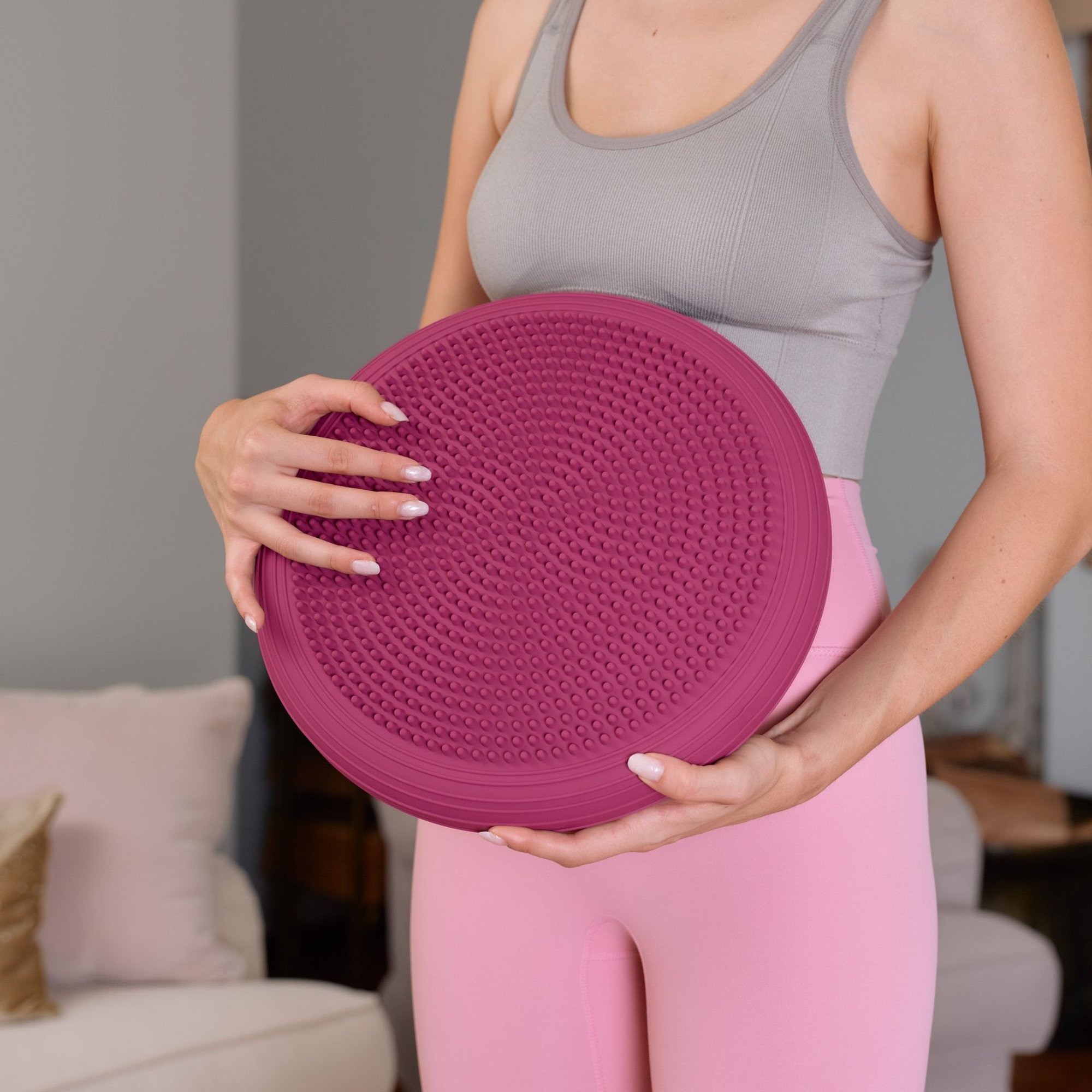 En un lado del cojín sensorial hay pequeños relieves con efecto masajeador, mientras que el otro lado tiene una superficie lisa. Puedes utilizar el cojín libremente según tus preferencias. Los relieves proporcionan un agradable masaje durante los ejercicios, estimulan la circulación sanguínea y aumentan la eficacia del entrenamiento.