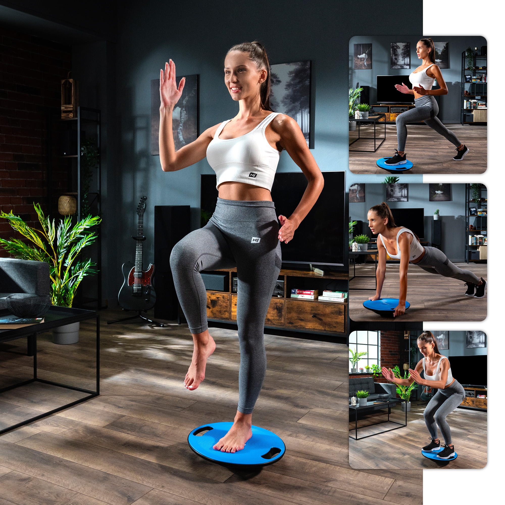Debido a las dimensiones compactas de la plataforma de equilibrio, prácticamente no hay limitaciones en cuanto al lugar para realizar el entrenamiento: lo único que necesitas es un pedazo de suelo nivelado. A diferencia de algunos equipos de fitness, a veces ruidosos, en la plataforma puedes ejercitarte a cualquier hora del día , sin preocuparte de que tu entrenamiento moleste a los demás en casa. La cantidad de ejercicios que puedes realizar es muy grande. Si recién comienzas con este tipo de producto, empieza simplemente parándote en la plataforma y trabaja en mejorar la coordinación. A medida que tus músculos ganen fuerza, puedes comenzar a realizar sentadillas, estocadas, flexiones, giros de torso y mucho más.