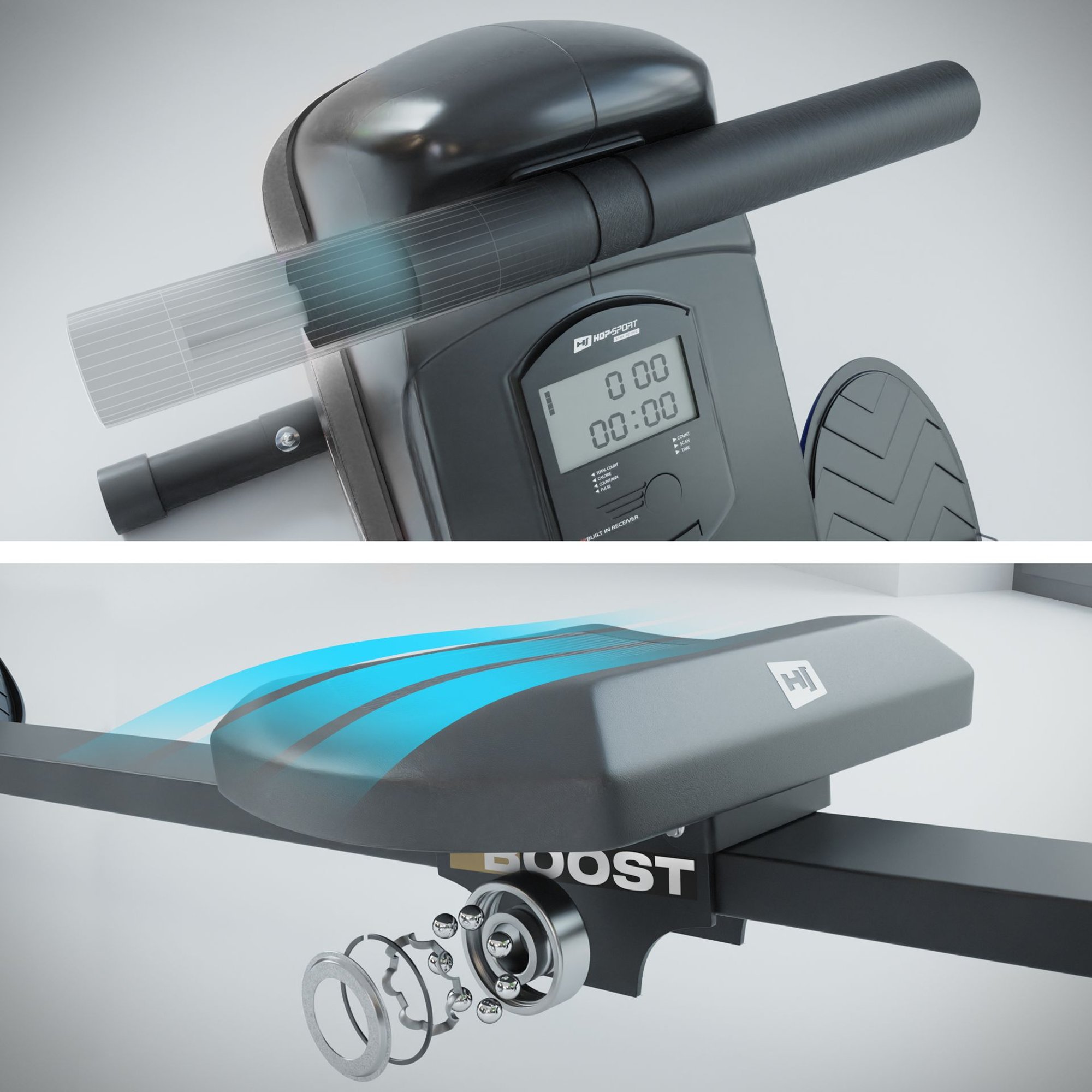Remo de entrenamiento HS-030R Boost con sistema de resistencia magnética de 9 kg y ajuste de resistencia de 10 niveles. Sistema de plegado cómodo y computadora de entrenamiento fácil de usar.