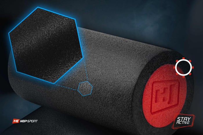 El rodillo HS-E030YG Hop-Sport está fabricado con material de espuma EPE de alta calidad con un grado medio de dureza. La espuma EPE es duradera, ligera, pero al mismo tiempo proporciona la presión adecuada durante el masaje. Además, no absorbe agua, es muy fácil de limpiar, no contiene sustancias aromáticas, lo que garantiza una higiene completa y seguridad en el uso.