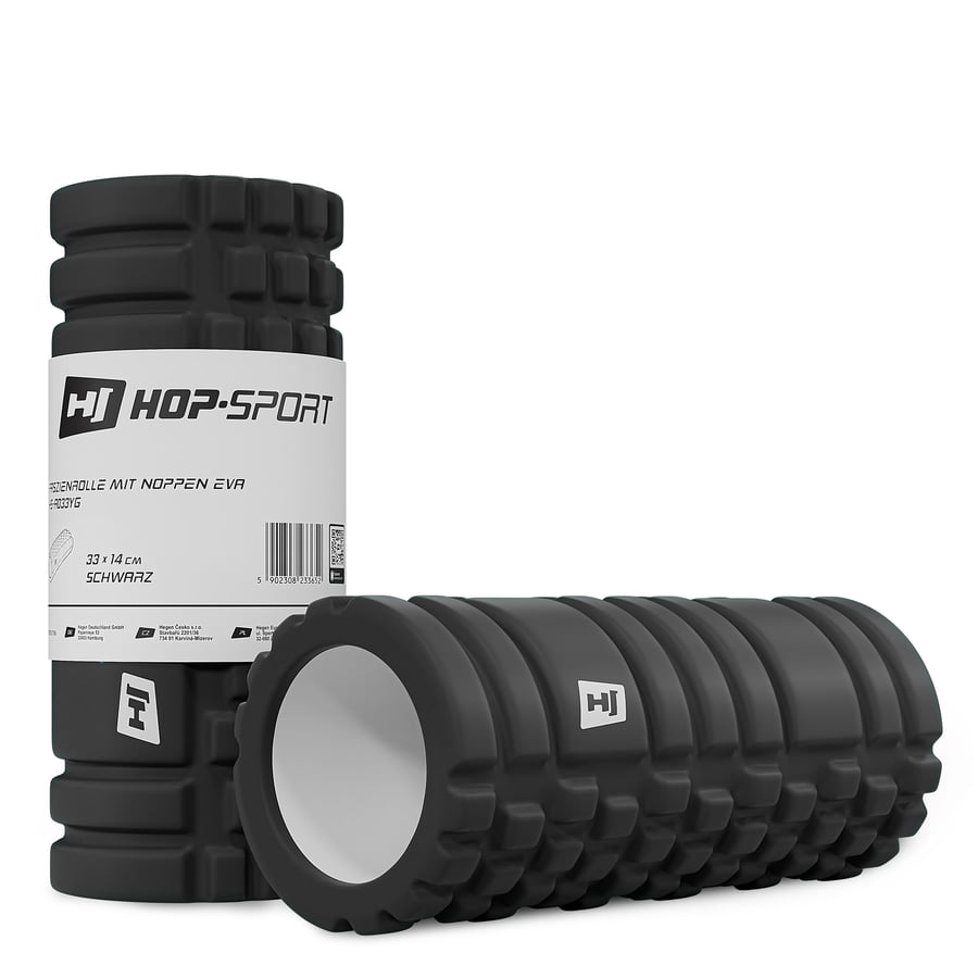 Rollo de masaje EVA 33 cm - negro es un dispositivo efectivo para relajar con precisión todo el cuerpo y para usar durante ejercicios de yoga o entrenamientos de crossfit. Es especialmente útil como ayuda para músculos muy tensos. También es un método apreciado para combatir la celulitis. Las protuberancias en el rollo HS – A033YG proporcionan un masaje intenso y profundo, mucho más fuerte que en el caso de rodillos con superficie lisa o ligeramente estructurada. Por esta razón, este modelo se recomienda para personas con al menos una constitución promedio o atlética. Una característica distintiva del rodillo es su núcleo hueco, que proporciona al usuario un agarre más cómodo que en el caso de un rollo con núcleo sólido.