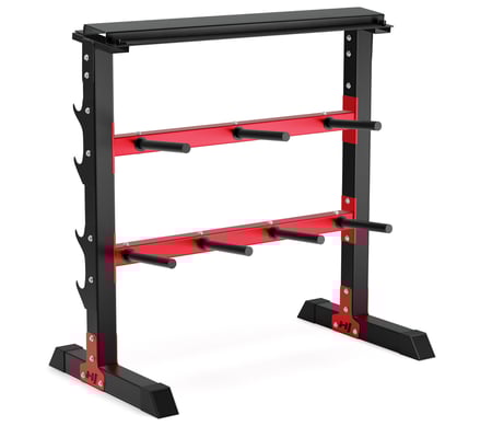 El soporte para barras, mancuernas y barras es un elemento funcional y muy útil para cualquier aficionado a los deportes de fuerza. Si buscas una solución ergonómica que te permita ahorrar espacio y aumentar la seguridad durante el entrenamiento, este es el producto para ti.
