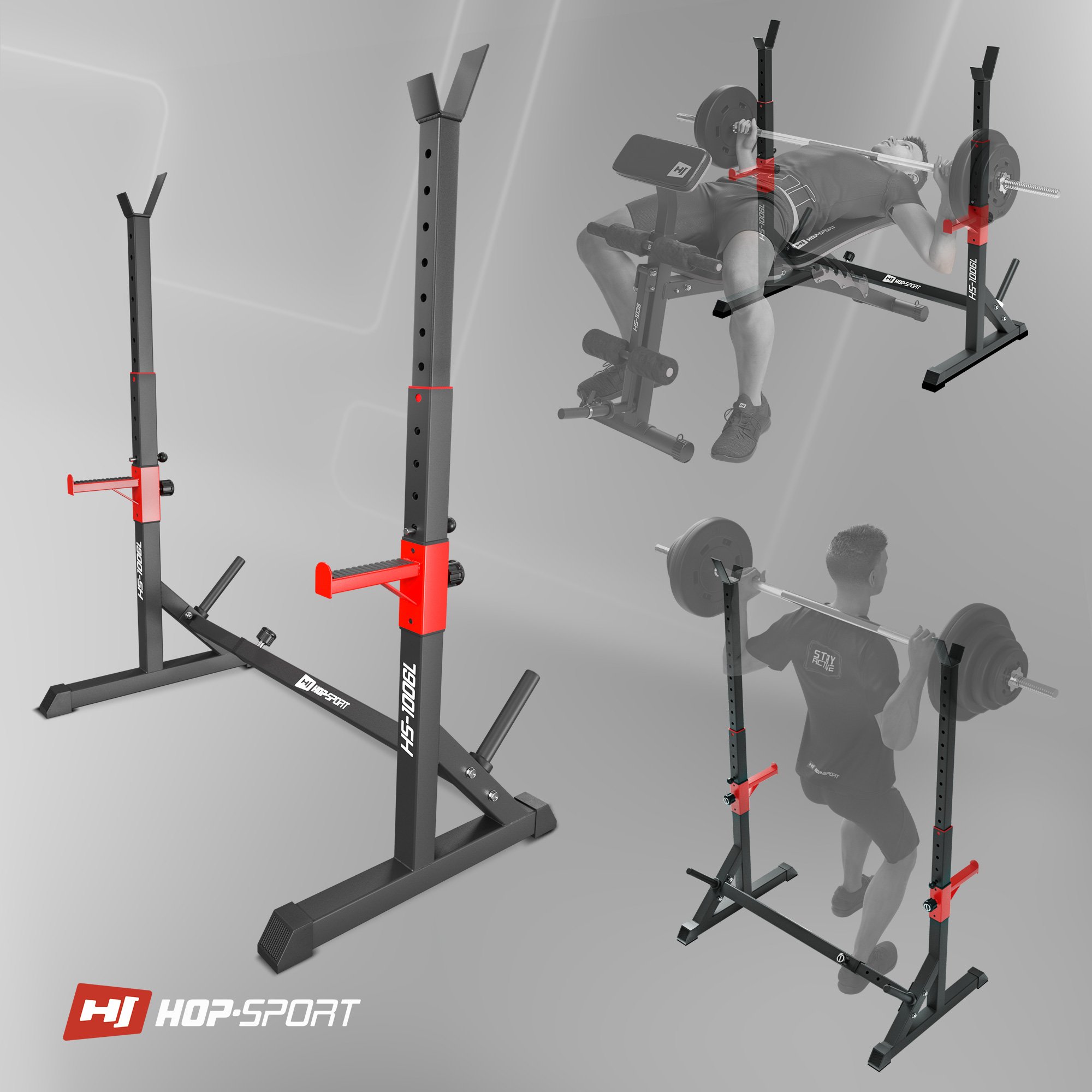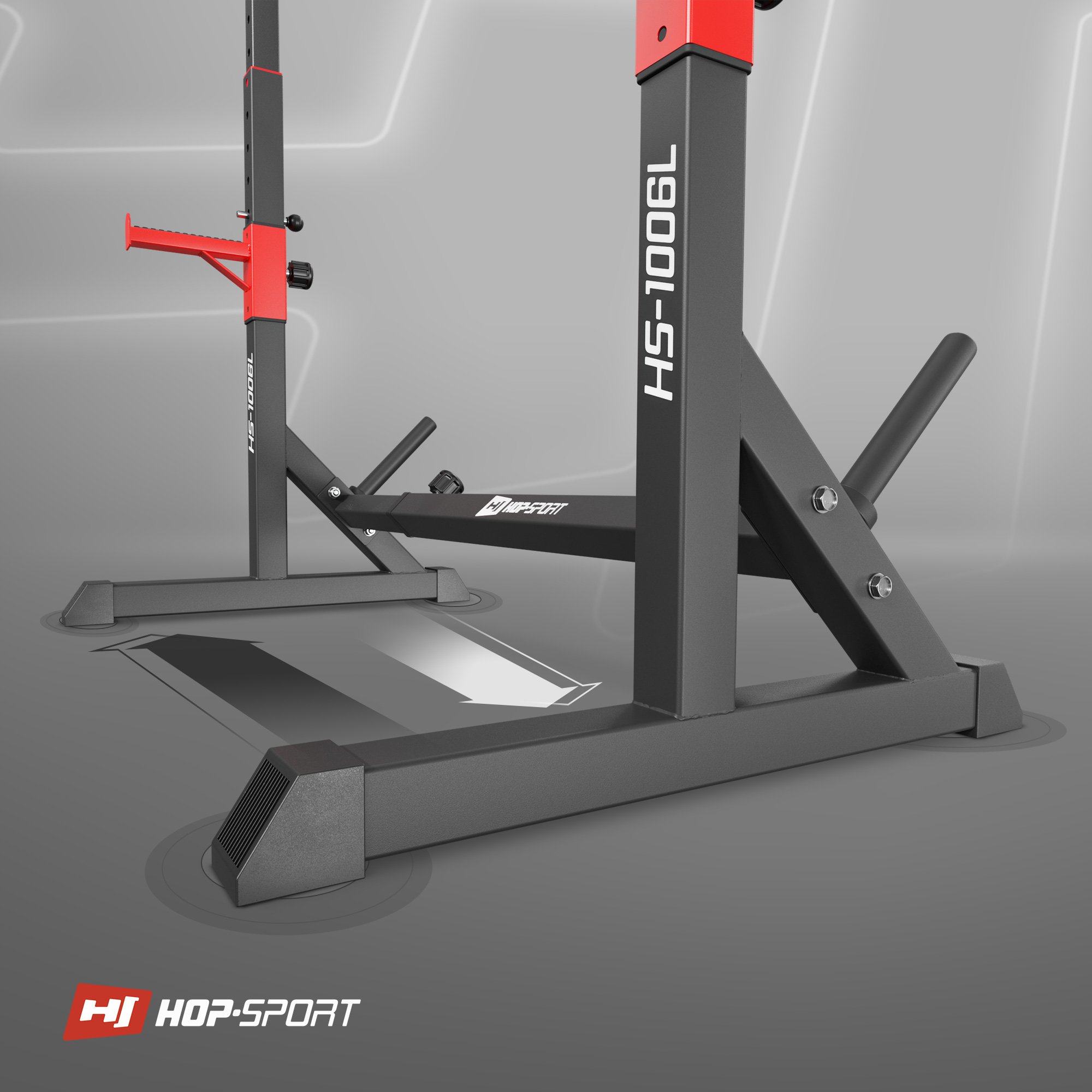 En los ejercicios de fuerza, la estabilidad del equipo es muy importante. El tamaño adecuado de la base y su diseño bien pensado son una prioridad que afecta tu seguridad. Los soportes HS-1006L están equipados con una base amplia y no se mueven durante el entrenamiento.