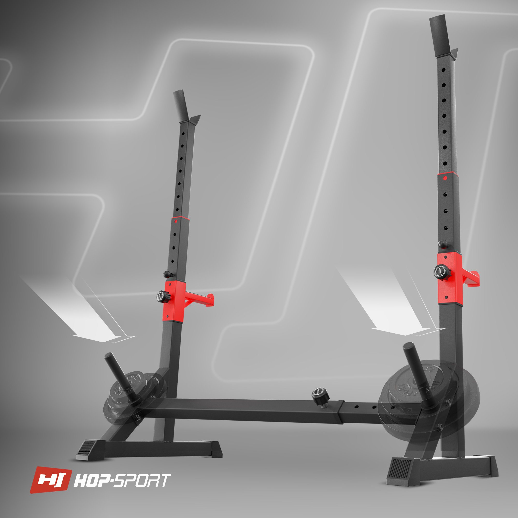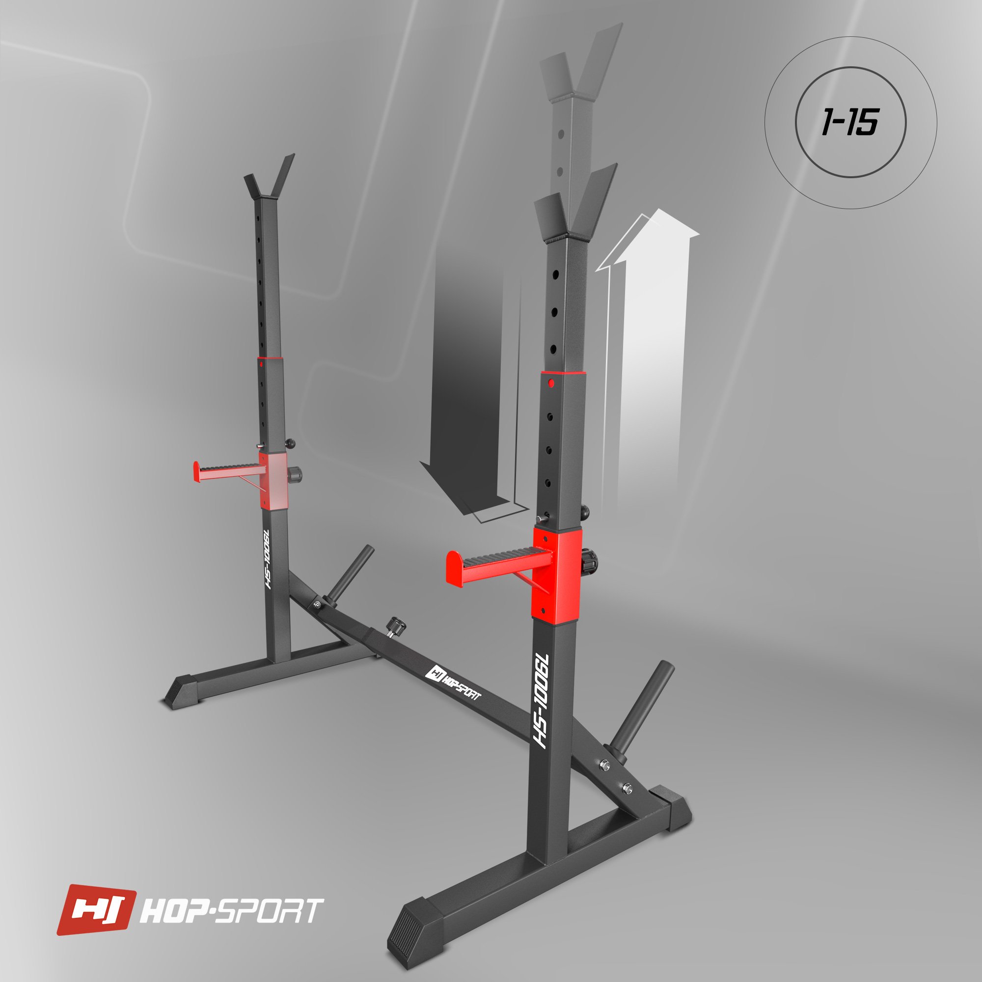 ¿Entrenas con pesas y necesitas un soporte eficaz durante el entrenamiento? Los soportes para barra HS-1006L de la marca Hop-Sport te permitirán realizar un entrenamiento profesional en tu propia casa. Los soportes HS-1006L tienen ajuste de altura, ancho y seguridad . La posibilidad de un ajuste versátil del equipo permite adaptarlo a las necesidades individuales y concentrarse en los ejercicios sin preocuparse por la seguridad. Los soportes permiten realizar una variedad de ejercicios, como press de banca y de pie. El uso del mecanismo de seguridad hace que los ejercicios con barra se puedan realizar de forma independiente, sin la ayuda y asistencia de otra persona o entrenador .